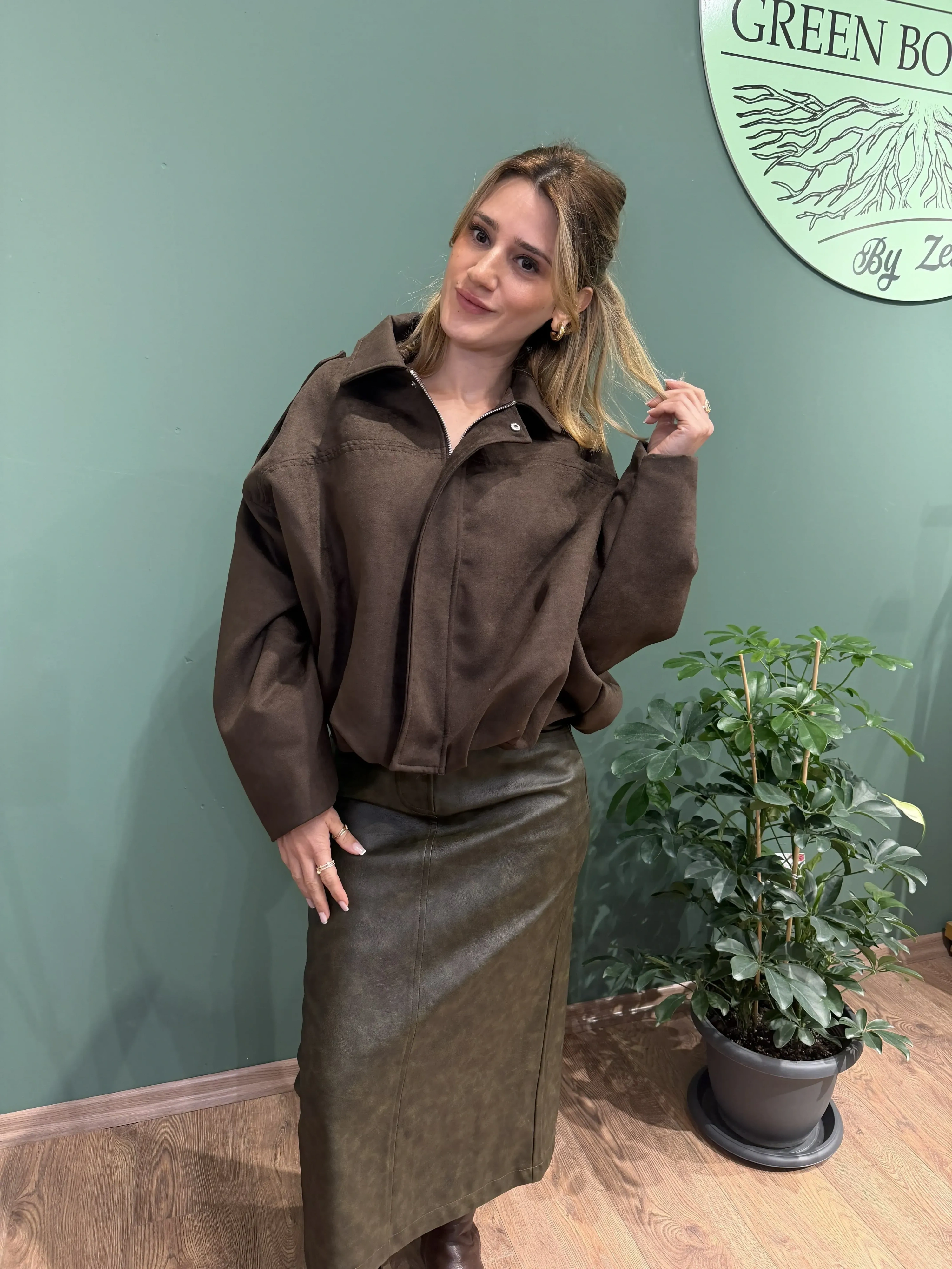 Midi boy kesimi ve arkadaki yırtmacı ile özgür hareket imkânı sağlayan etek, günlük kombinlerden özel davetlere kadar geniş bir kullanım alanı sunar. Haki rengin doğal ve sofistike havası, kış ve sonbahar tonlarıyla mükemmel uyum yakalayarak stilinize güçlü bir dokunuş katar.