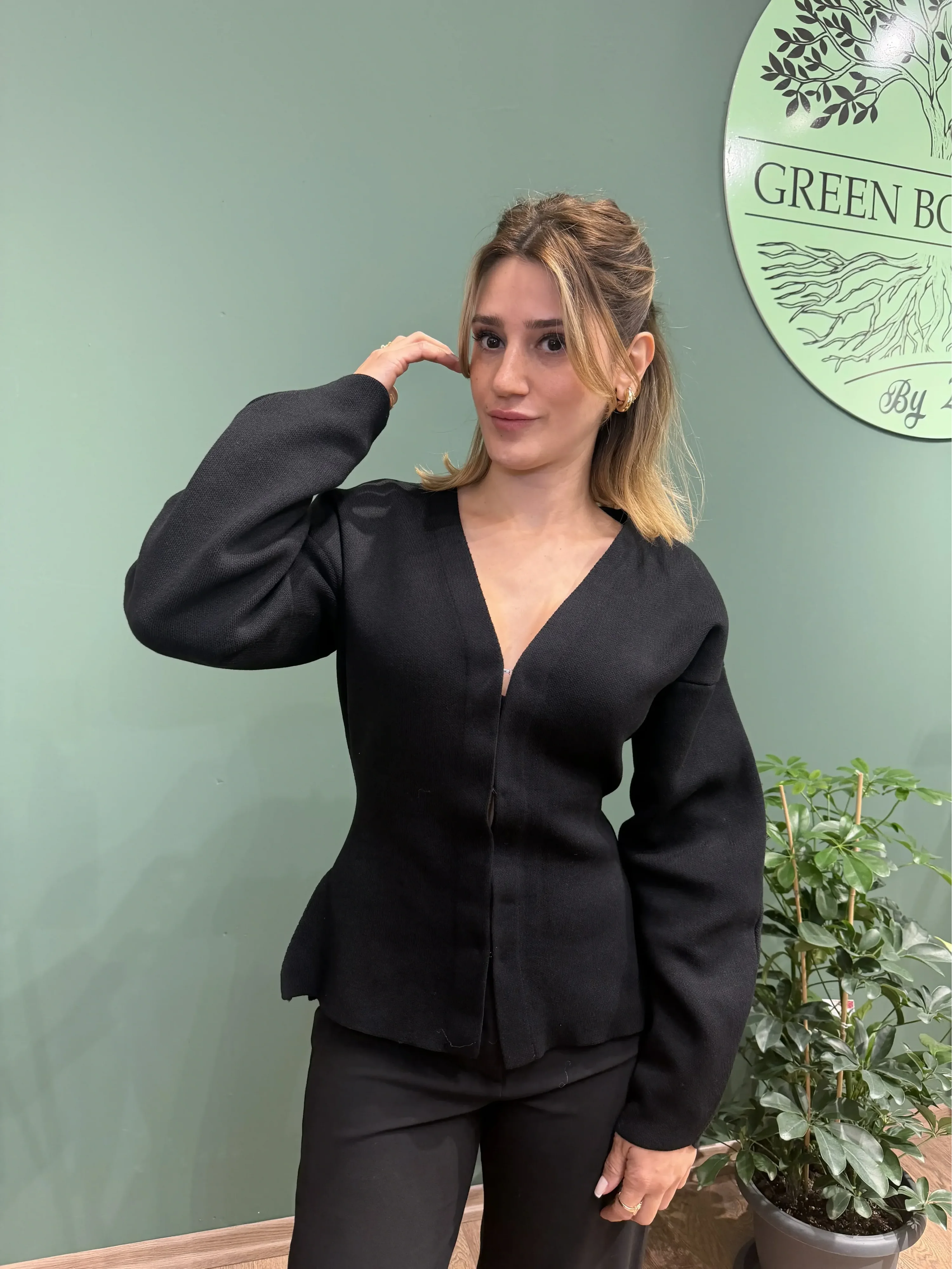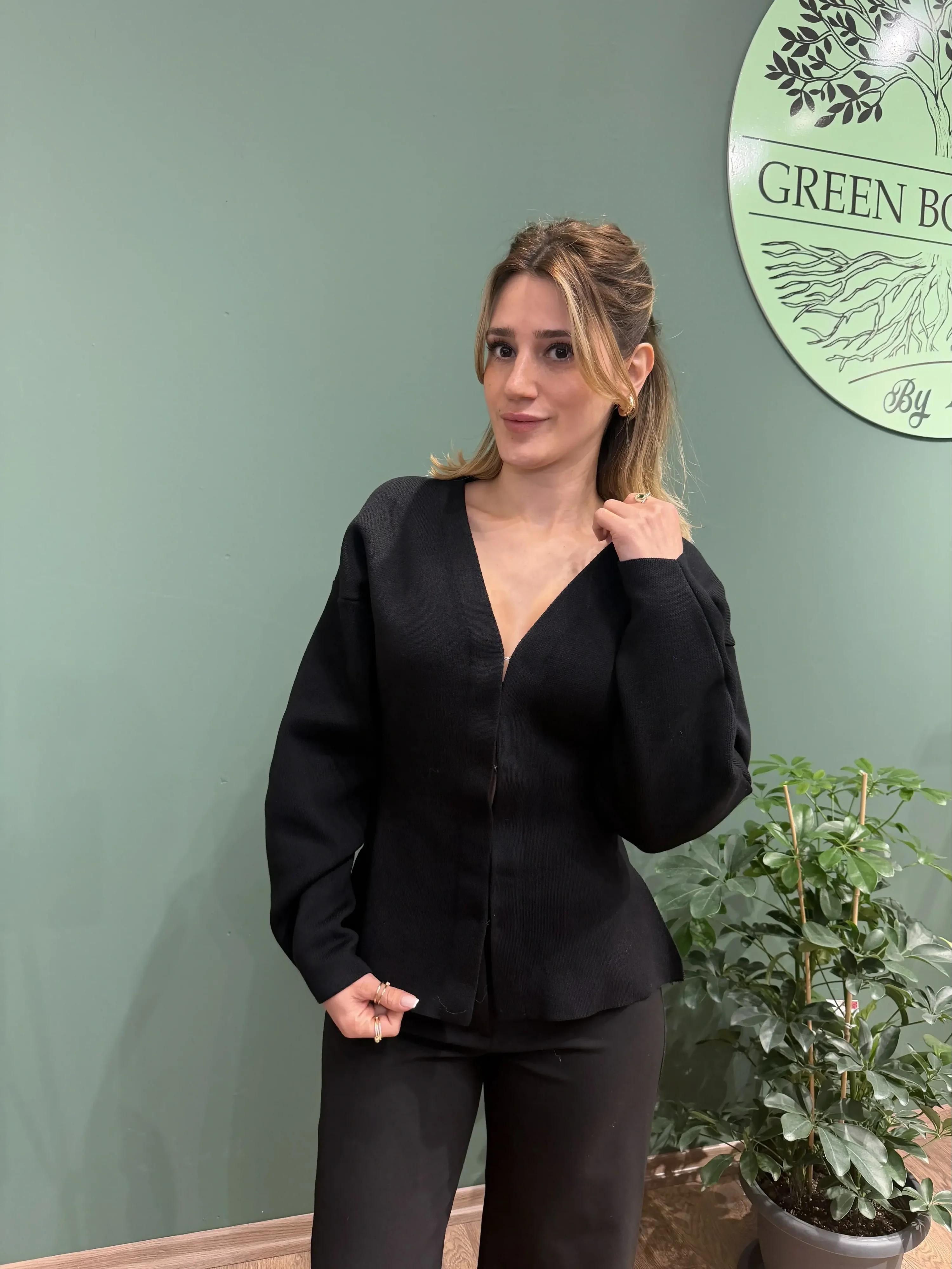 Çelik Örgü Hırka Siyah – Şıklığın ve Zarafetin Modern Yorumu