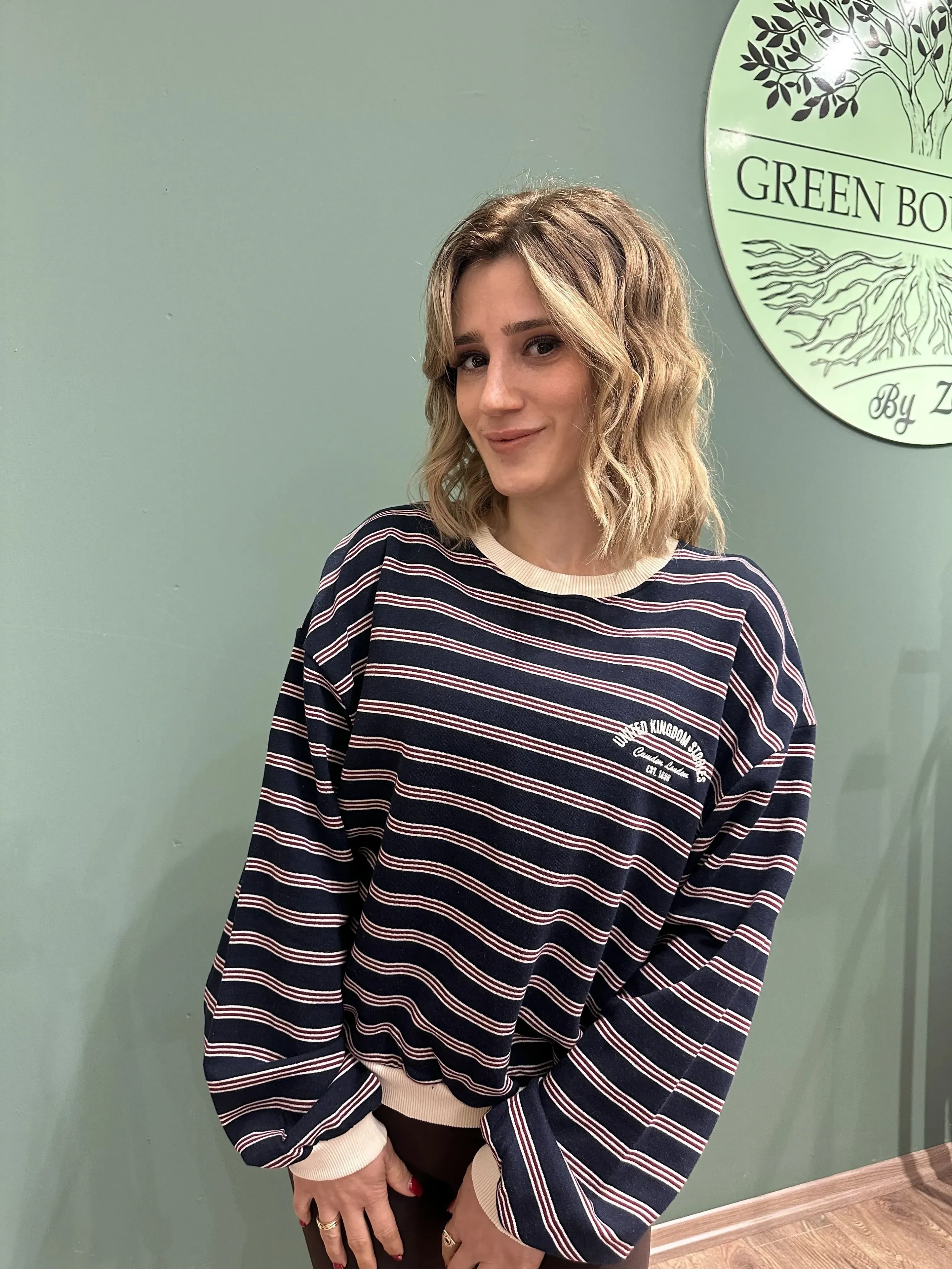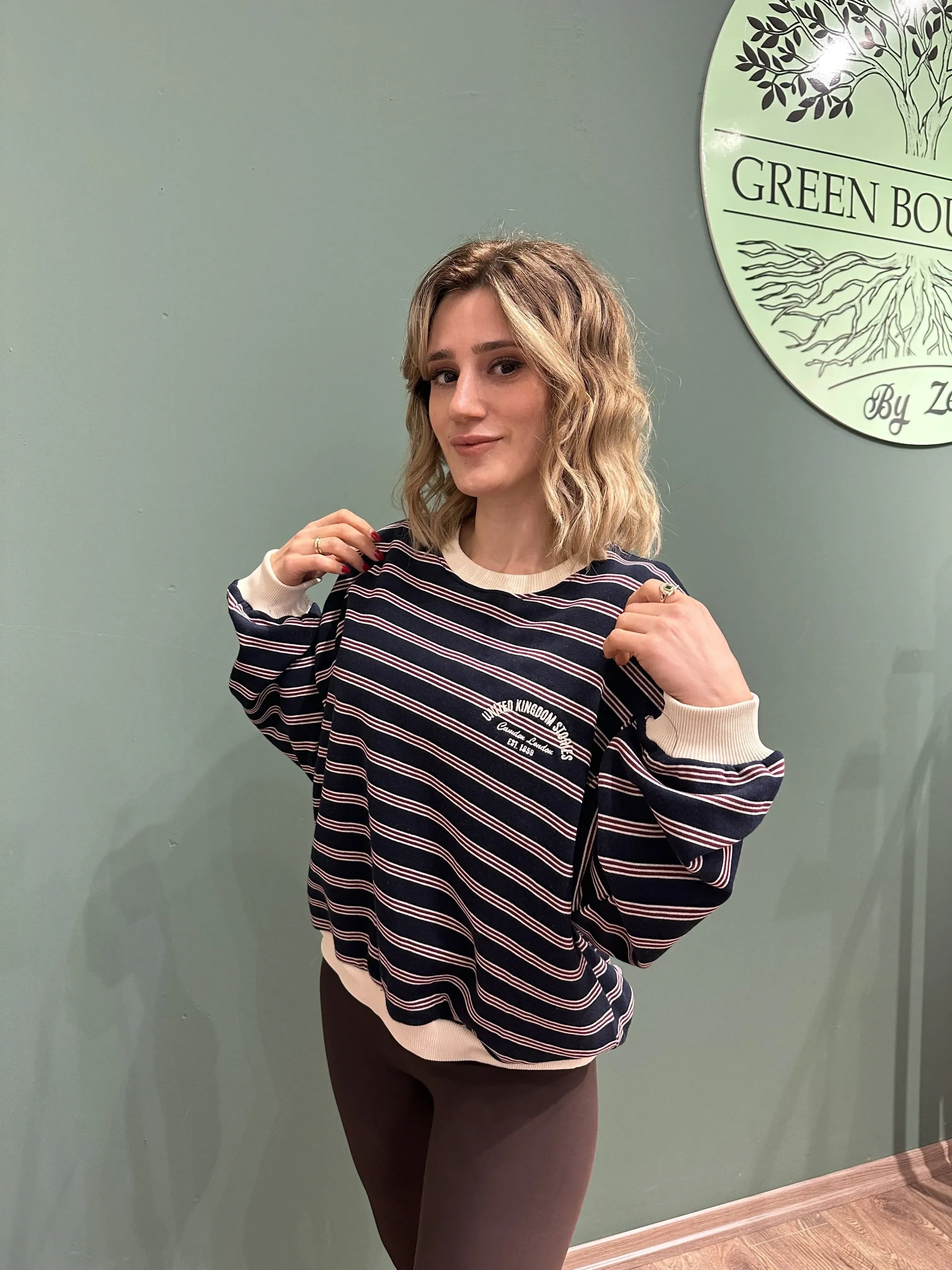 Günlük stilinizde modern bir dokunuş arıyorsanız, Çizgili Renk Bloklu Oversize Lacivert Sweatshirt tam size göre! Oversize kesimi sayesinde özgür ve rahat bir kullanım sunarken, renk blokları ve çizgi detayları ile kombininize enerjik bir hava katar.