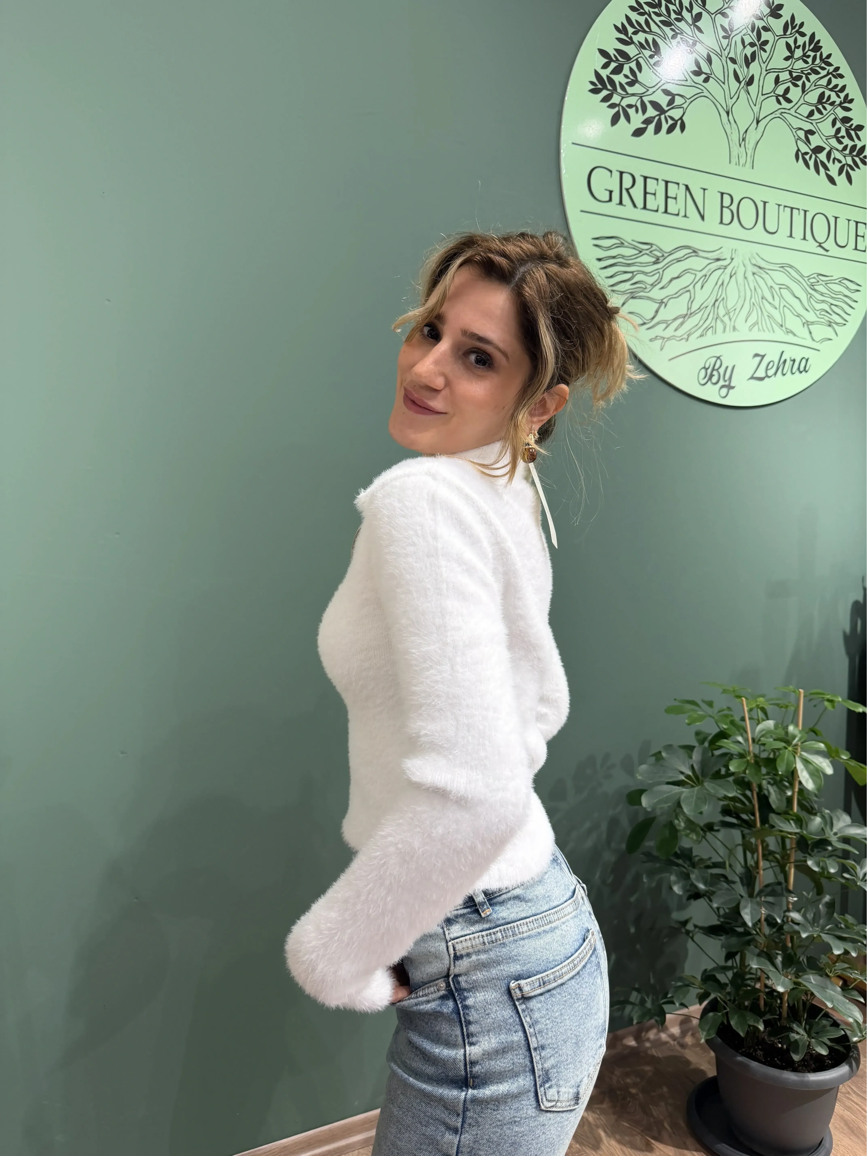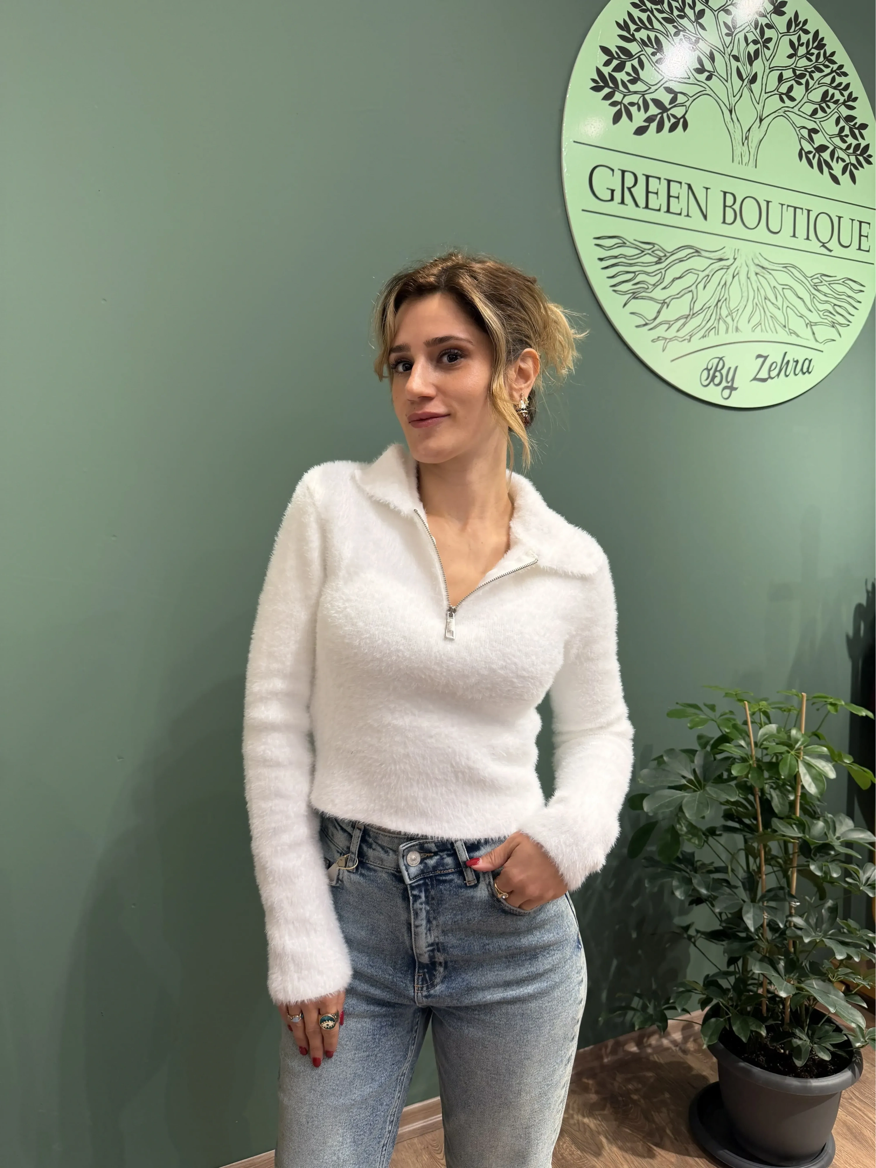 Fermuarlı tasarımı sayesinde hem sade hem fonksiyonel bir görünüm sunar. Beyaz rengi her kombinle kolayca uyum sağlar ve minimal şıklığı sevenler için ideal bir tercihtir. Hem rahat hem de modern bir kazak arayanlar için vazgeçilmez bir parçadır.