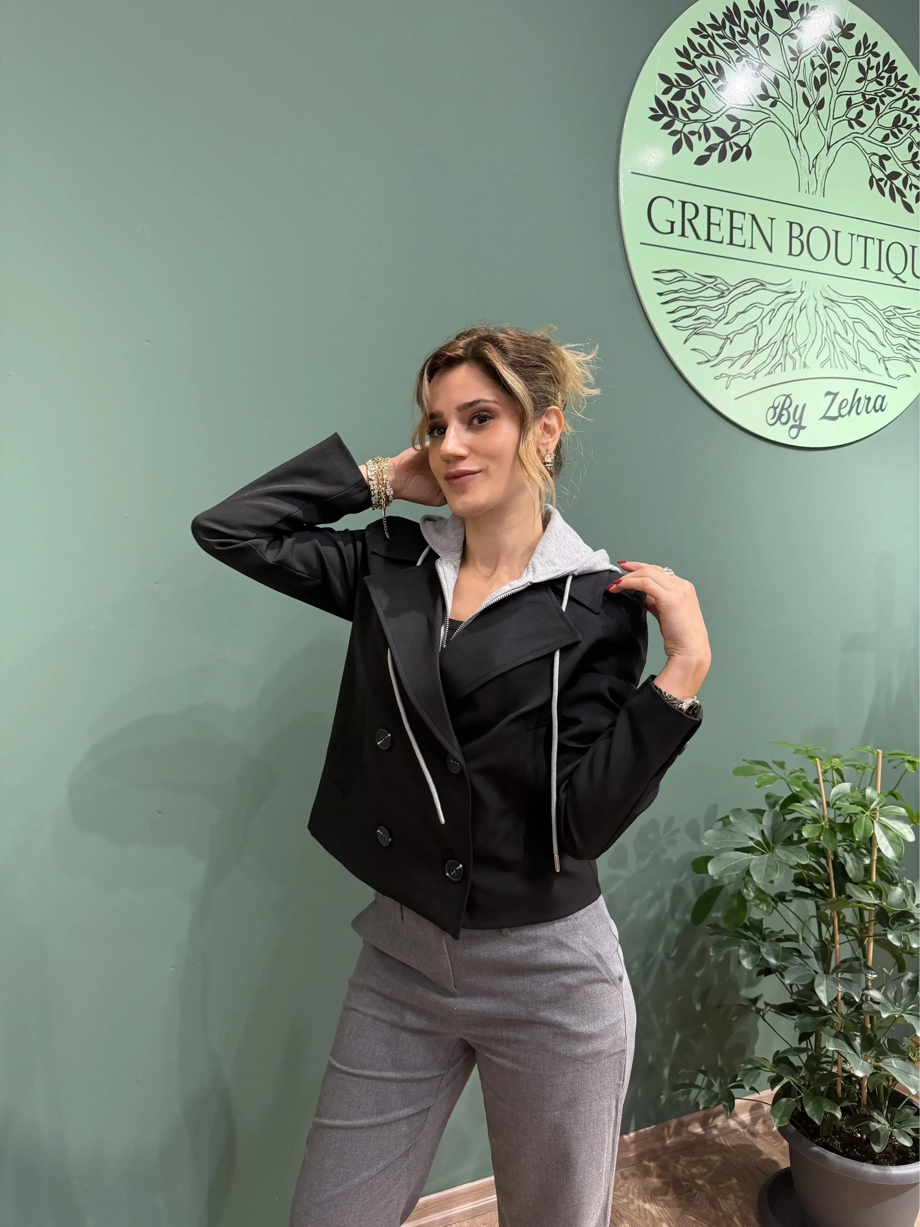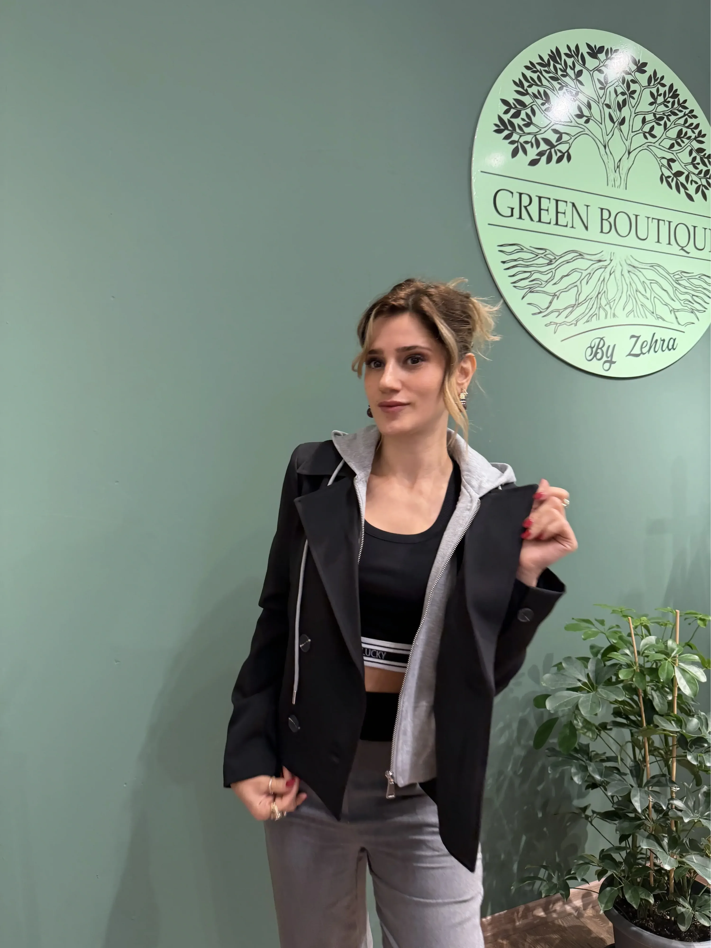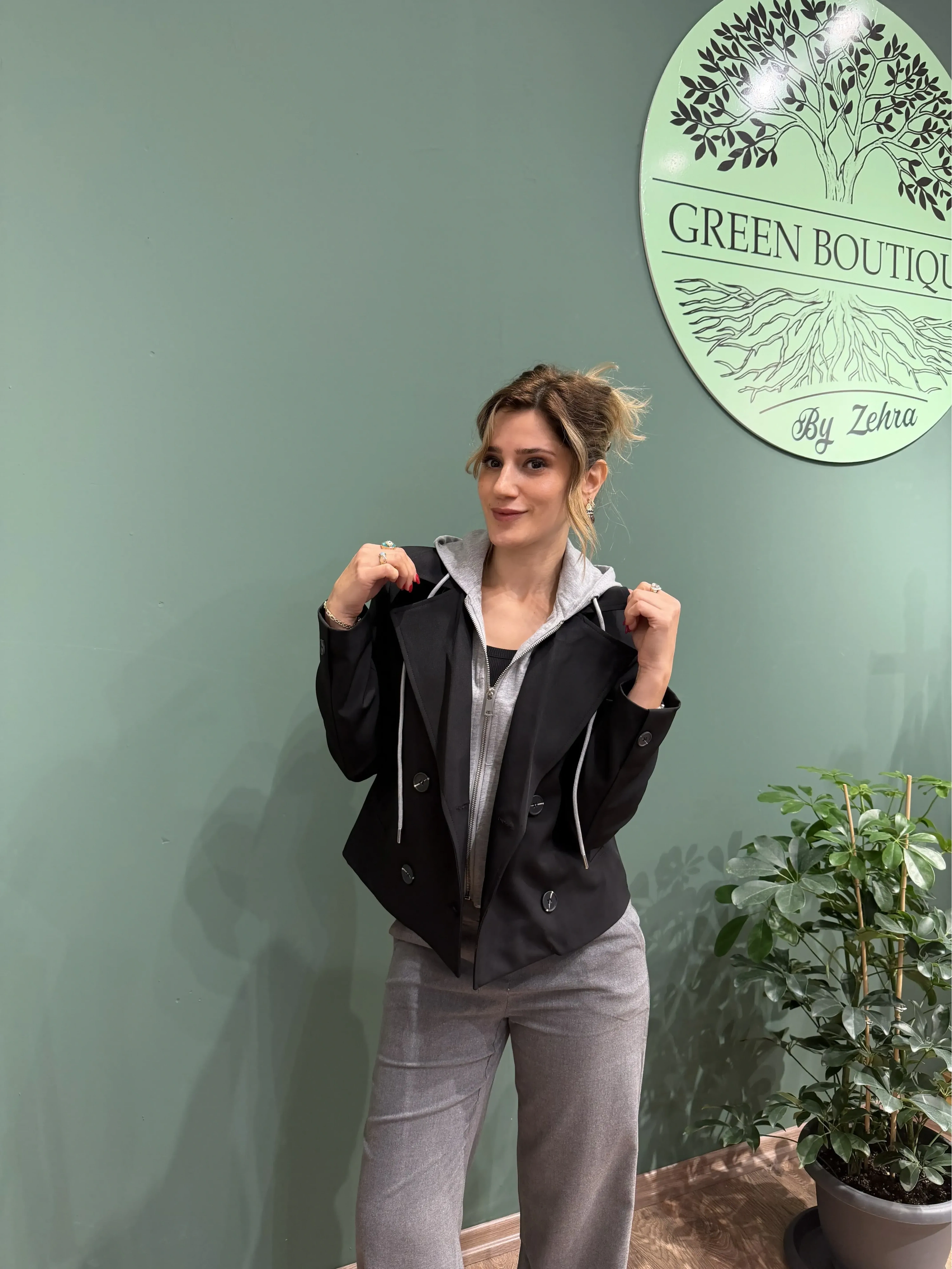 Bu gri kapşonlu ceket, hem şıklığı hem de fonksiyonelliği bir arada sunar. Kapüşon çıkarılabilir özelliktedir; ihtiyacınıza göre kapüşonlu veya klasik ceket olarak kullanabilirsiniz. Siyah detaylar, gri rengin üzerine modern bir kontrast katar ve farklı kombinlerle uyum sağlar.