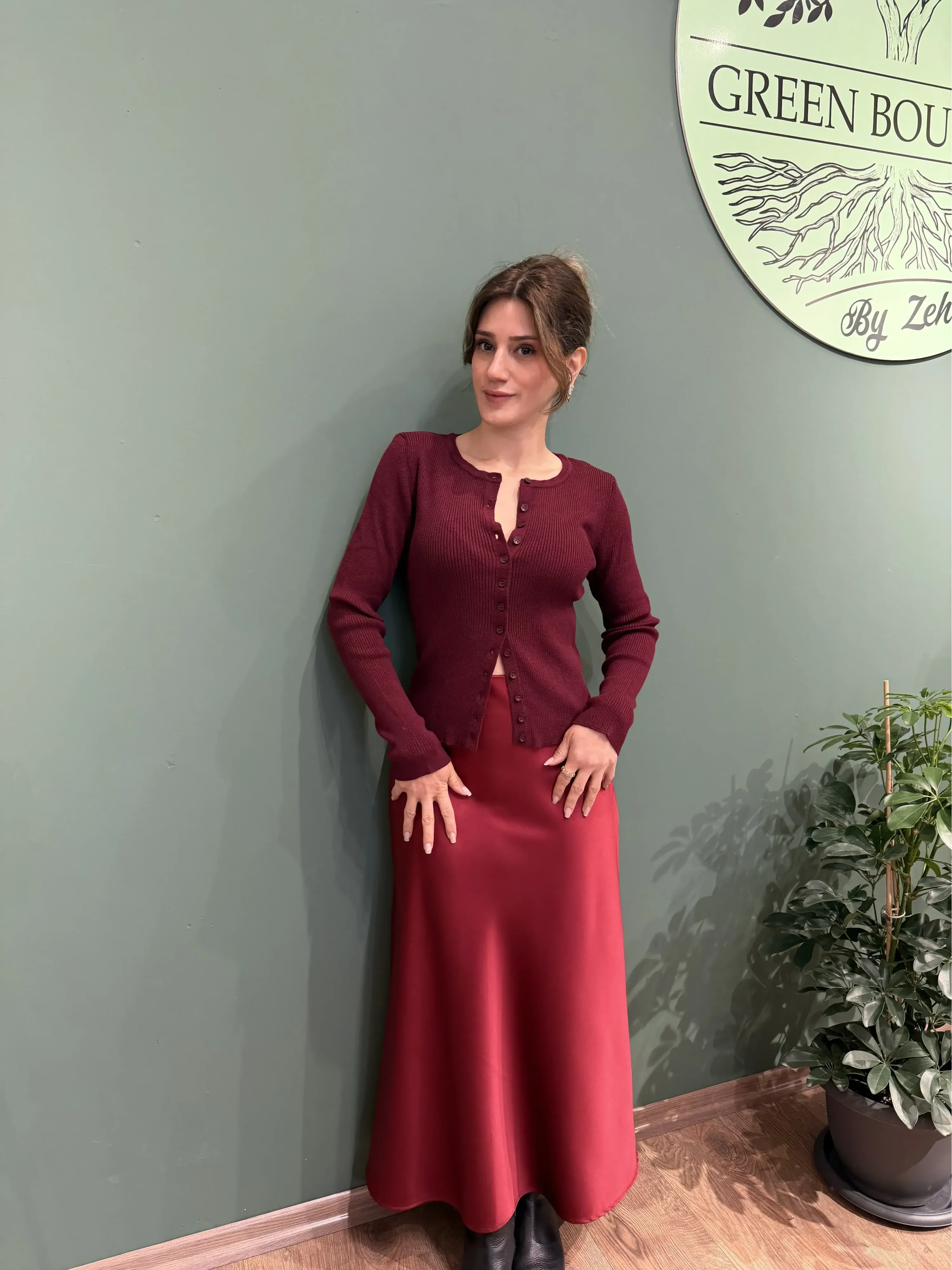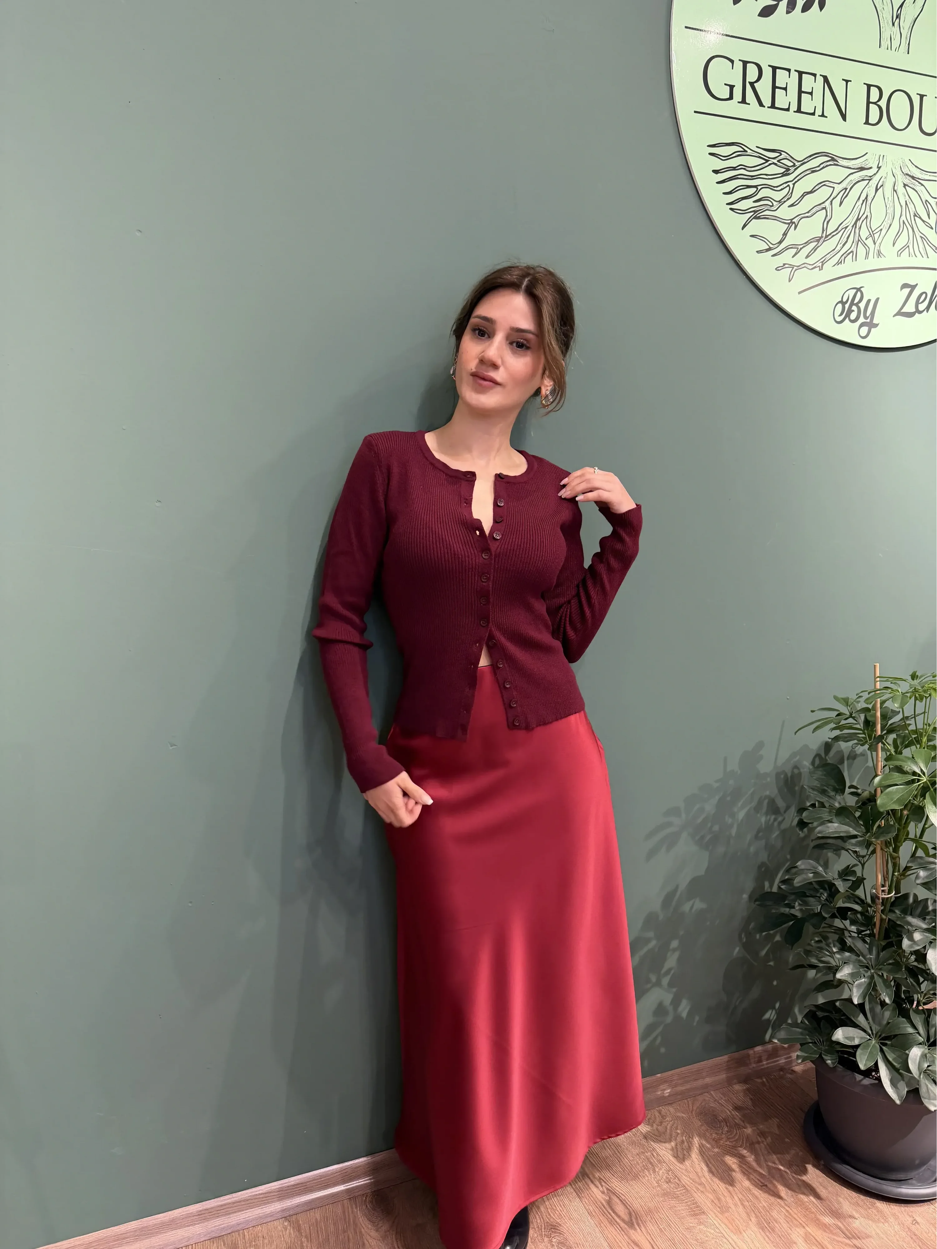 İnce Triko Hırka Bordo – Şıklığı ve Konforu Bir Arada Sunan Zamansız Parça