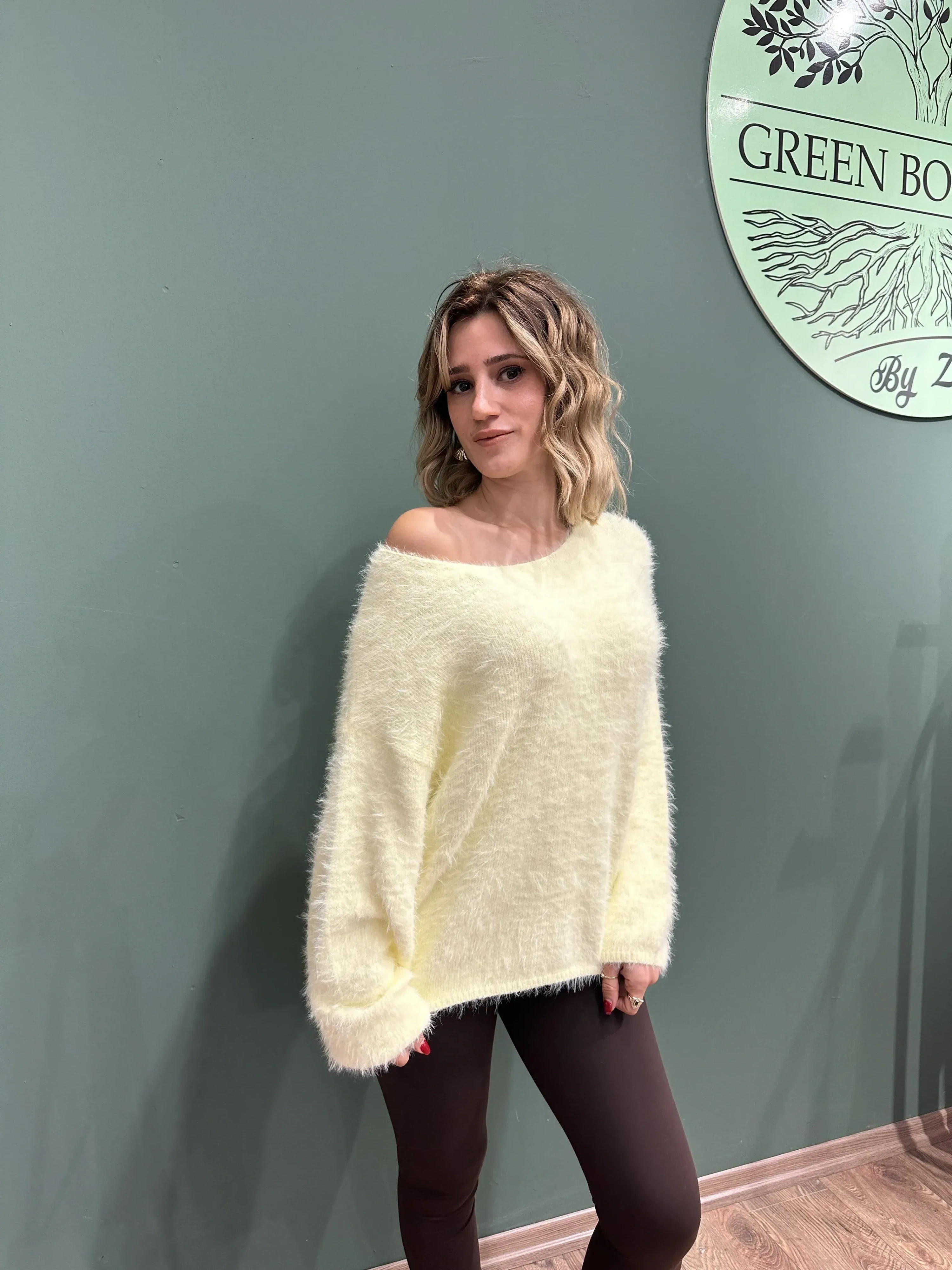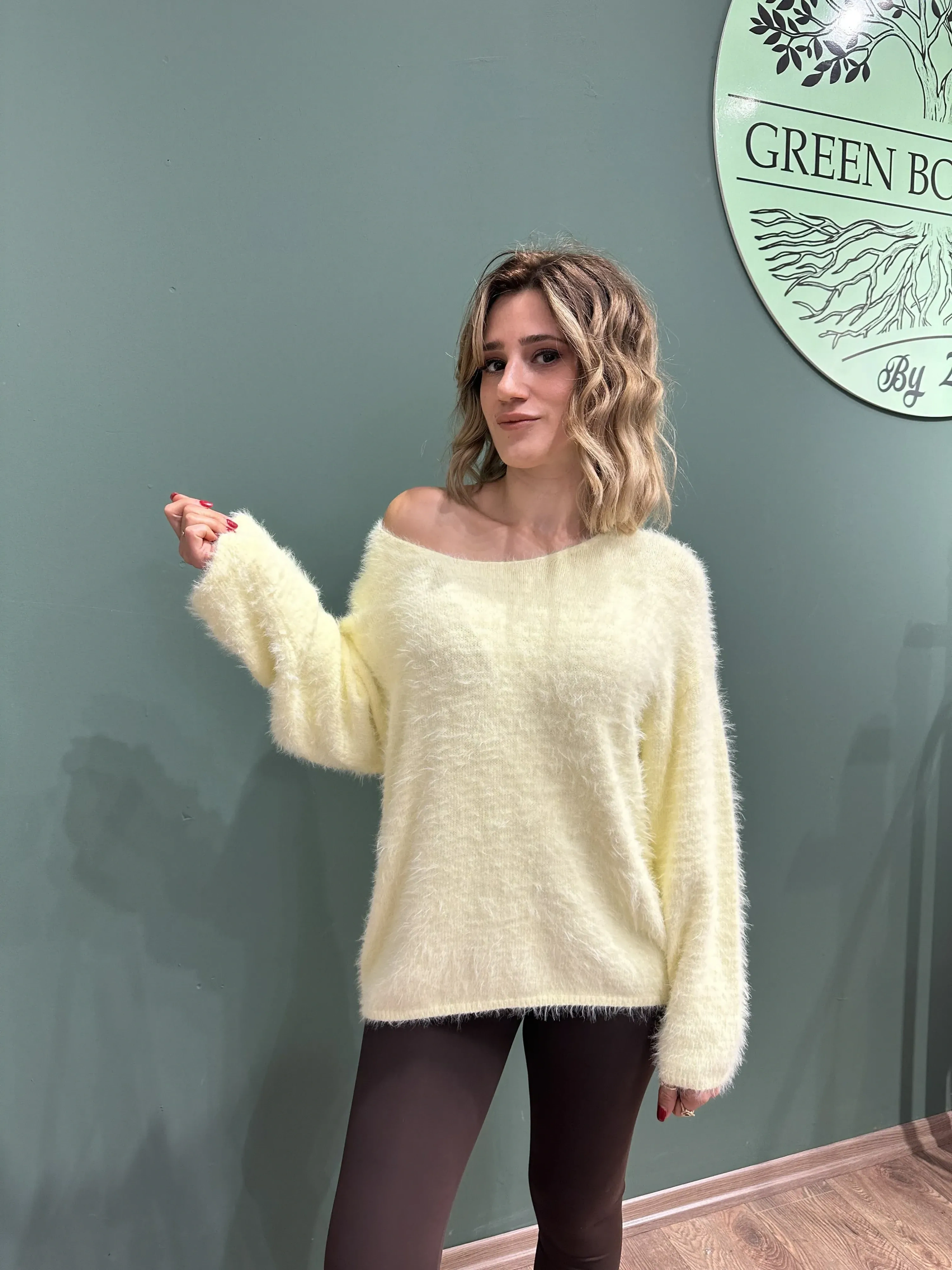 Kayık Yaka Yumuşak Dokulu Triko Kazak – Sarı