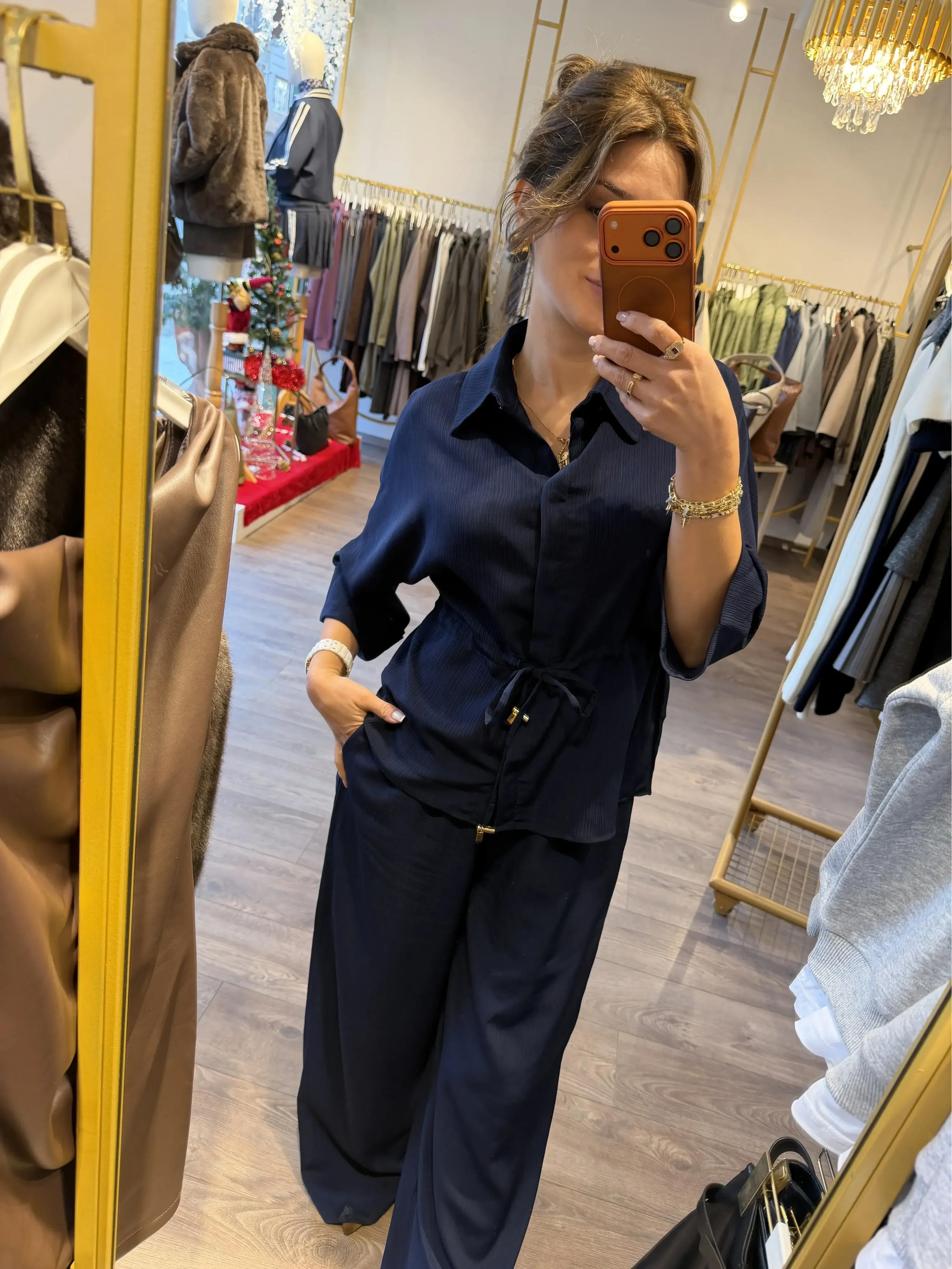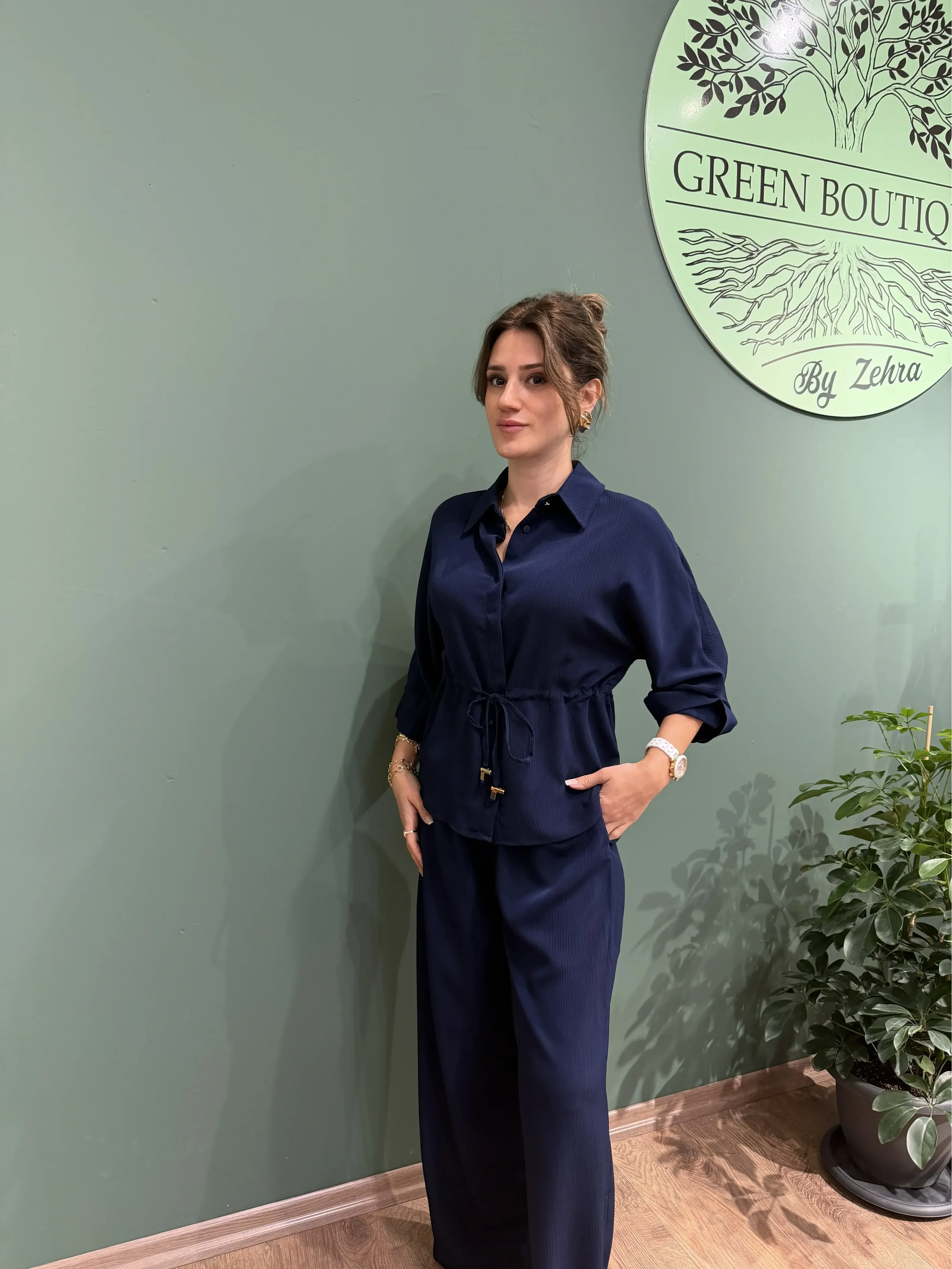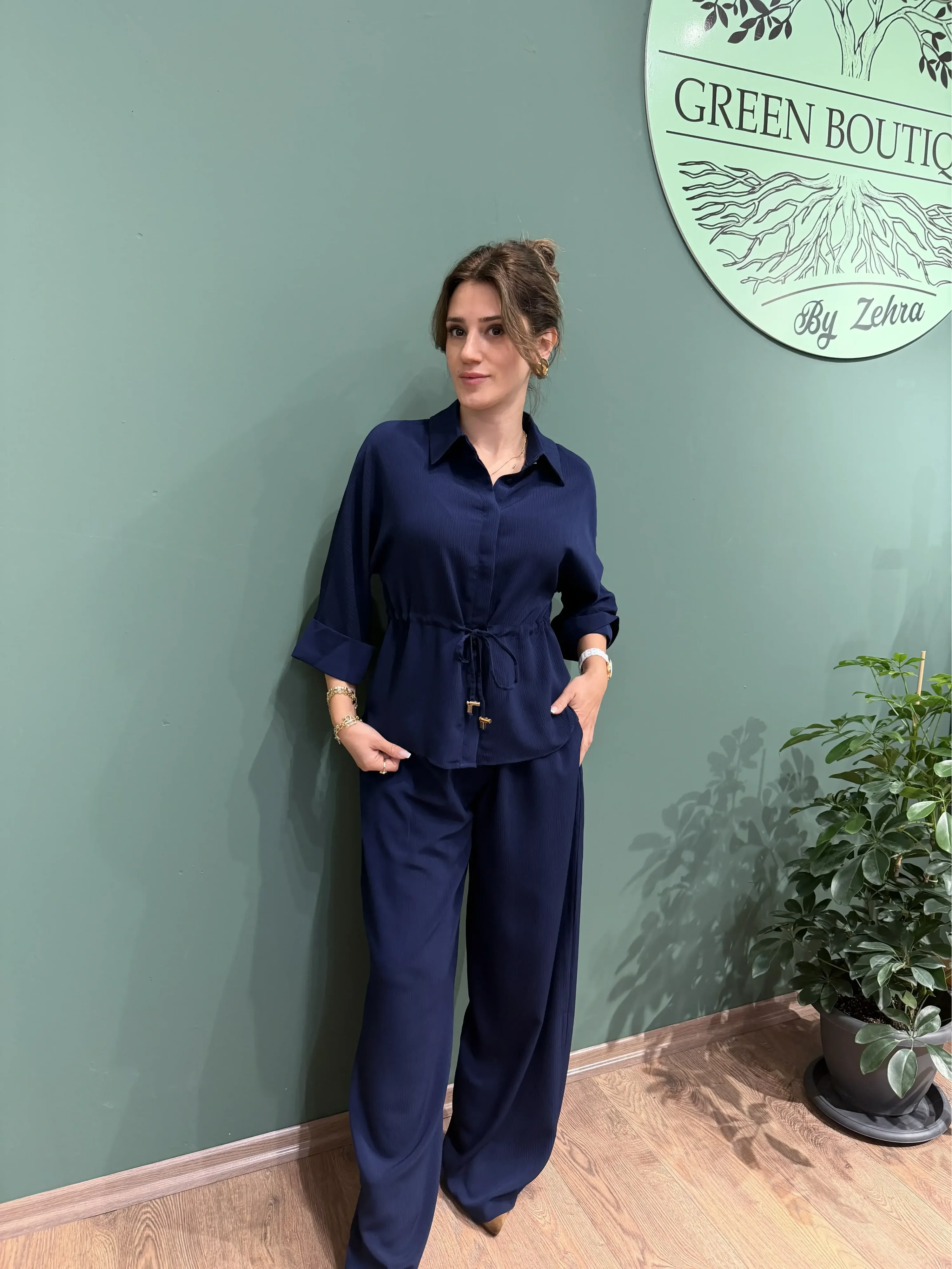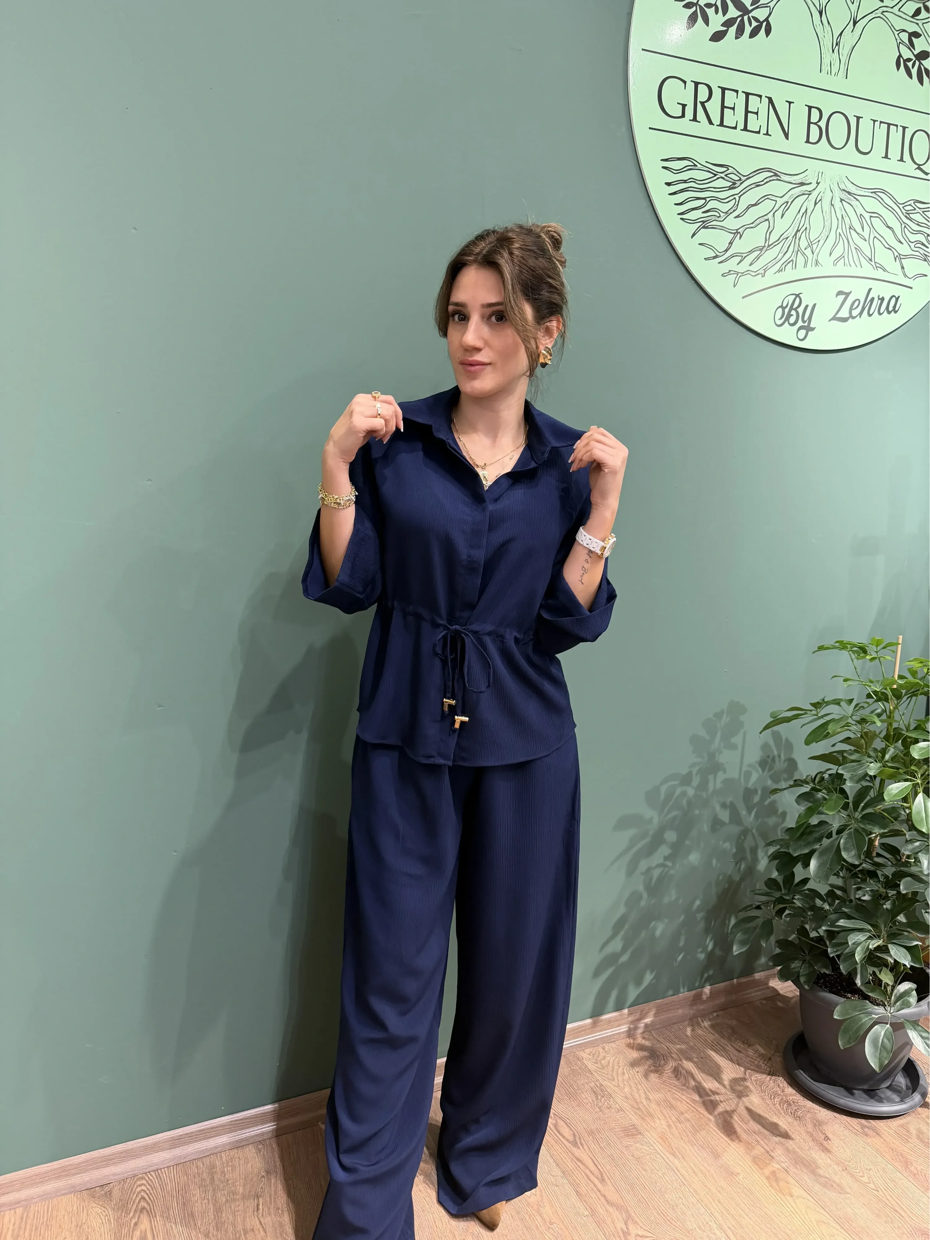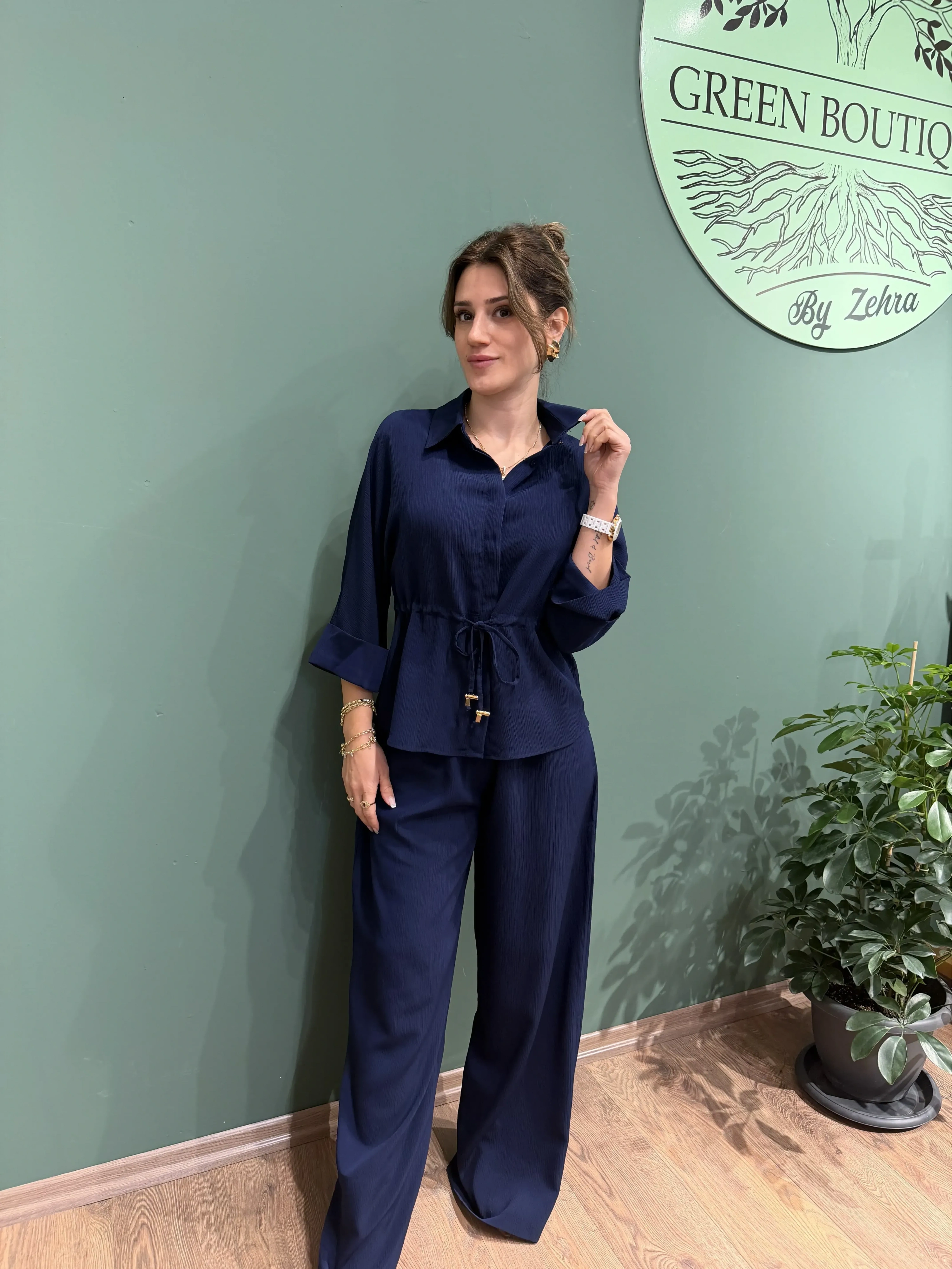 Günün her anında hem şık hem rahat olmak isteyenler için tasarlanan Lacivert Crinkle Kumaş Gömlek Pantolon Takım, modern çizgisi ve doğal dokusu ile stilinize zarif bir dokunuş katıyor. Kendinden dokulu crinkle kumaşı sayesinde kırışma yapmaz, nefes alır ve uzun süre formunu korur. Bu sayede hem günlük kullanıma hem de özel davetlere mükemmel uyum sağlar.