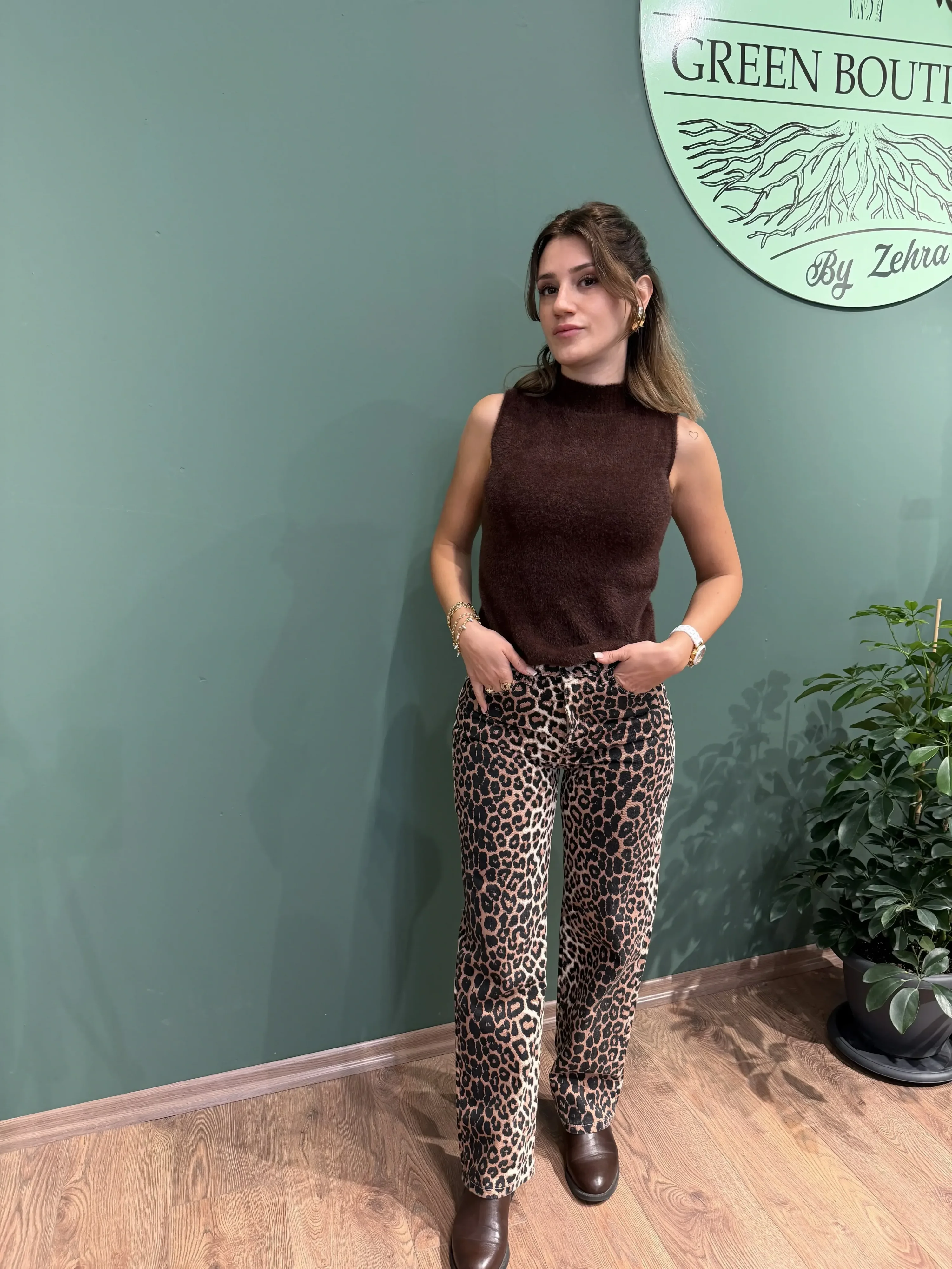 Tarz sahibi görünmek isteyenler için ideal: Leopar deseni ve yüksek bel kesimiyle sıradan kotlardan farklı, cesur ve iddialı bir stil yaratır.