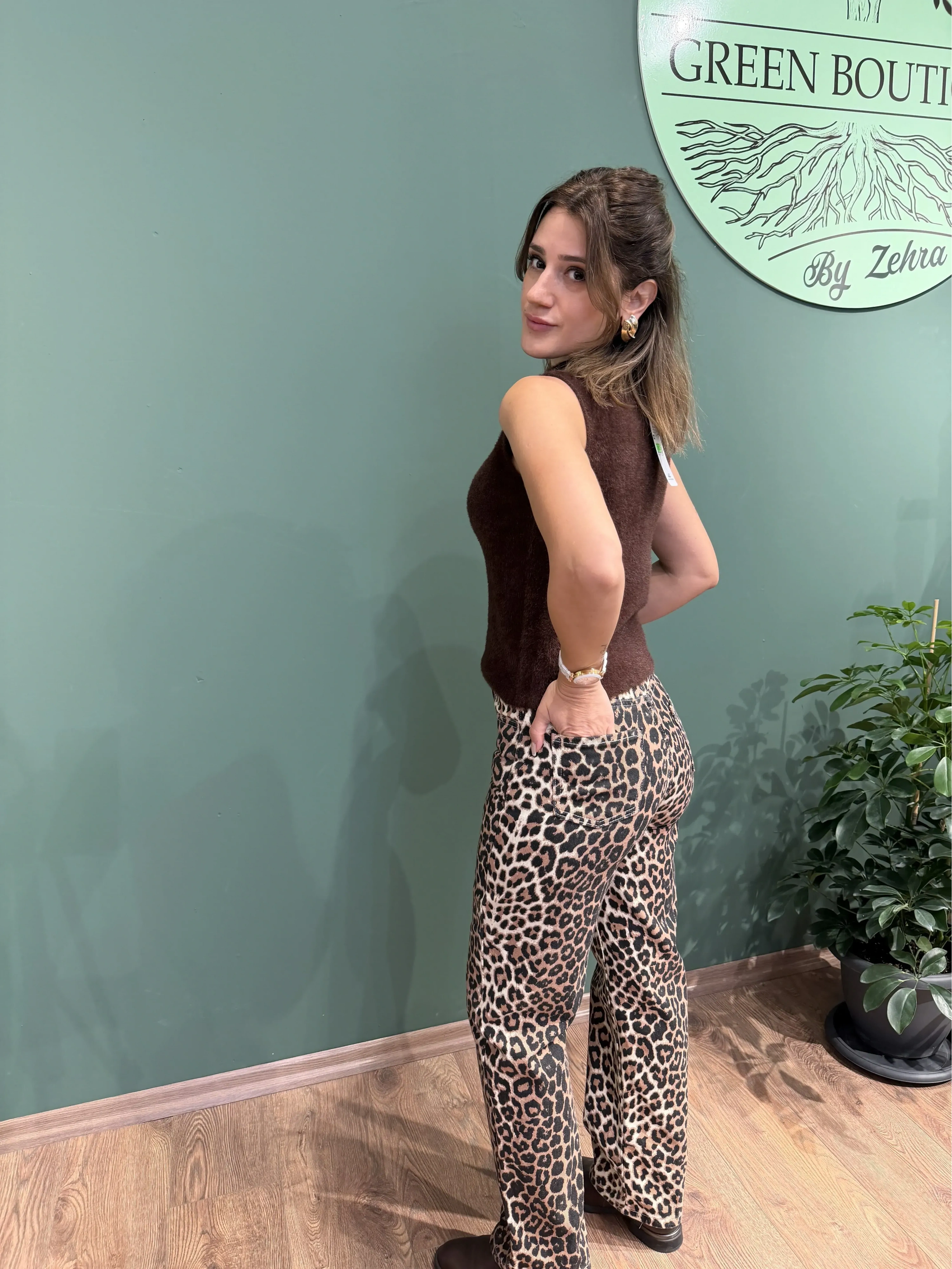 Trend ve güncel: Leopar deseni özellikle bu sezon moda; bu pantolon gardrobunuzun dikkat çeken parçası olacak.