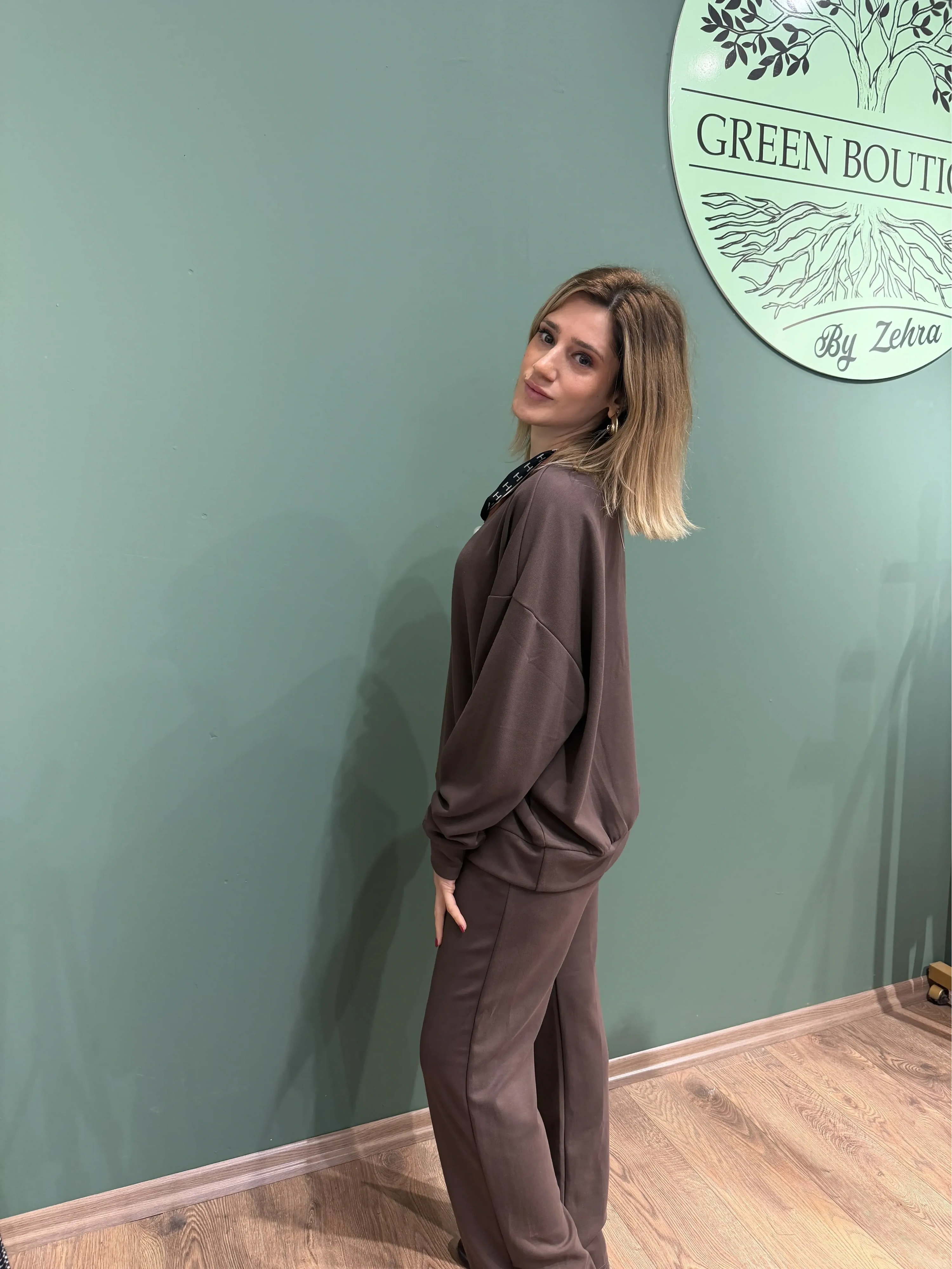 Günlük stilinize hem zarafet hem de rahatlık katmak istiyorsanız, Modal Kumaş Fularlı Açık Kahve Yazı Detaylı Eşofman Takım tam size göre! Yüksek kaliteli modal kumaşı sayesinde yumuşacık bir dokuya sahip olan bu takım, nefes alan yapısı ile gün boyu konfor sunar.