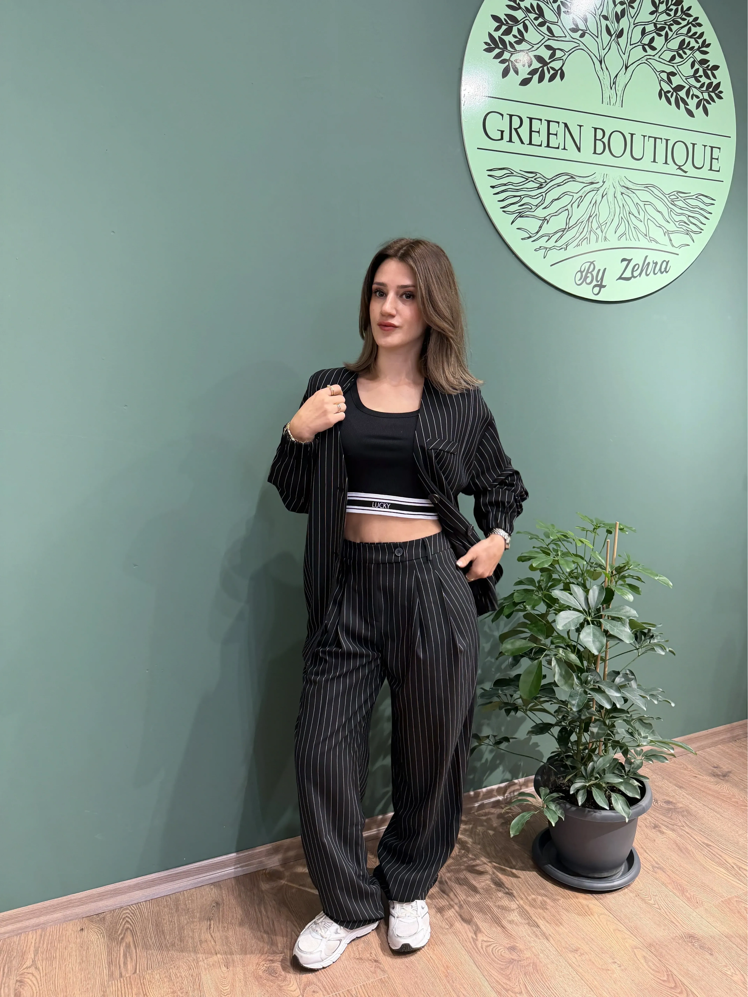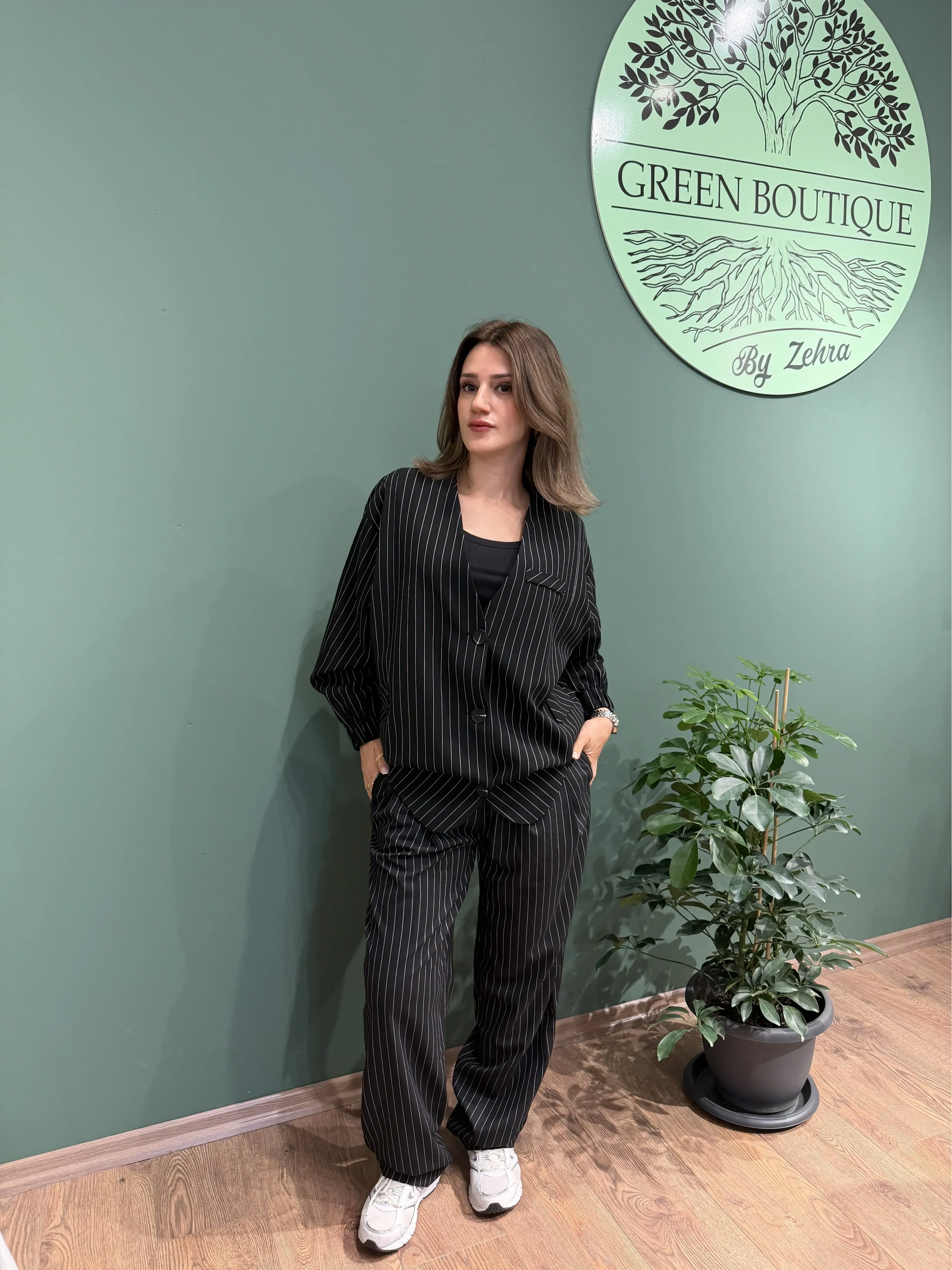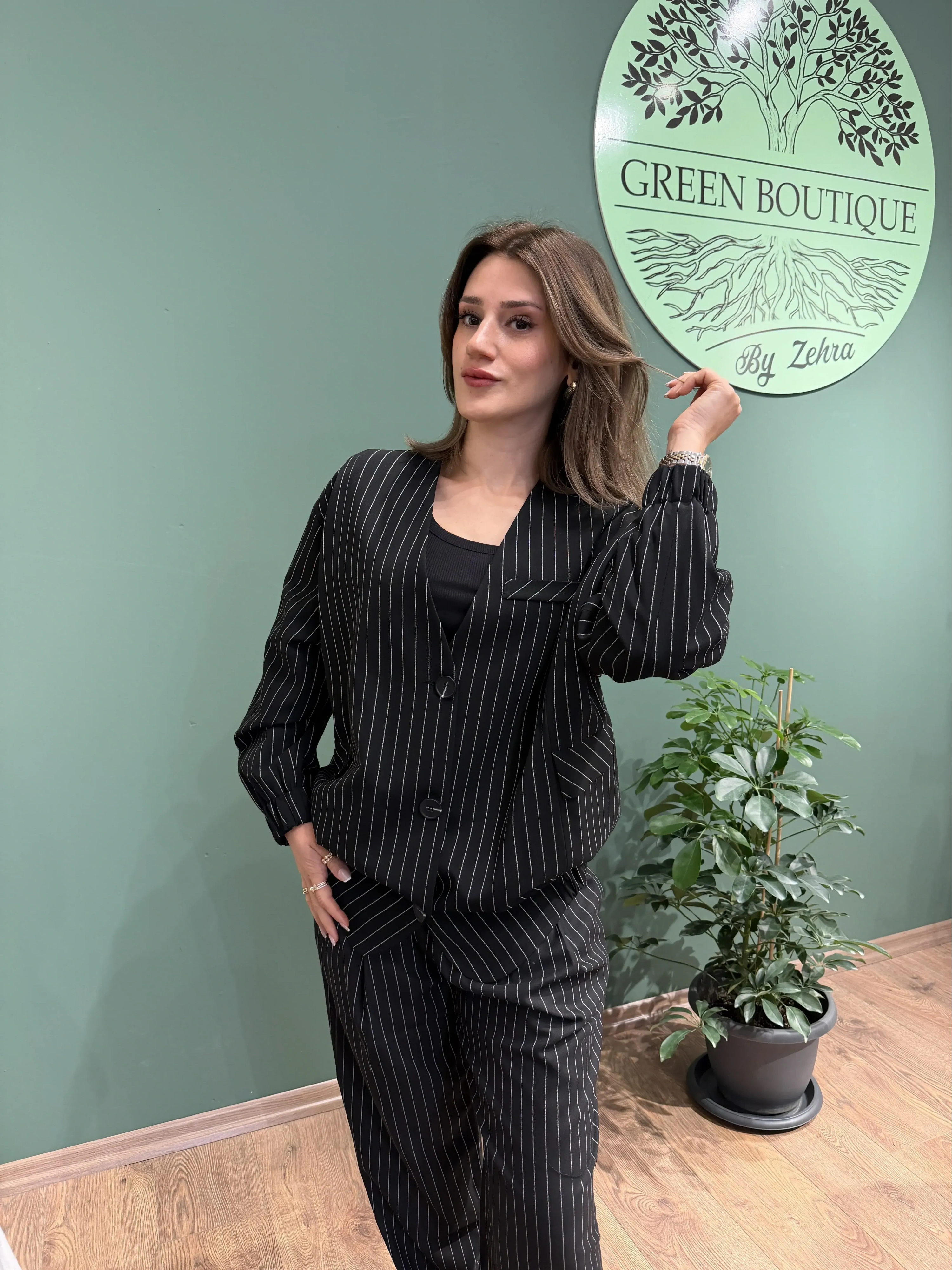 Siyah Beyaz Çizgili Ceket Pantolon Takım | Şık ve Modern İş Stili