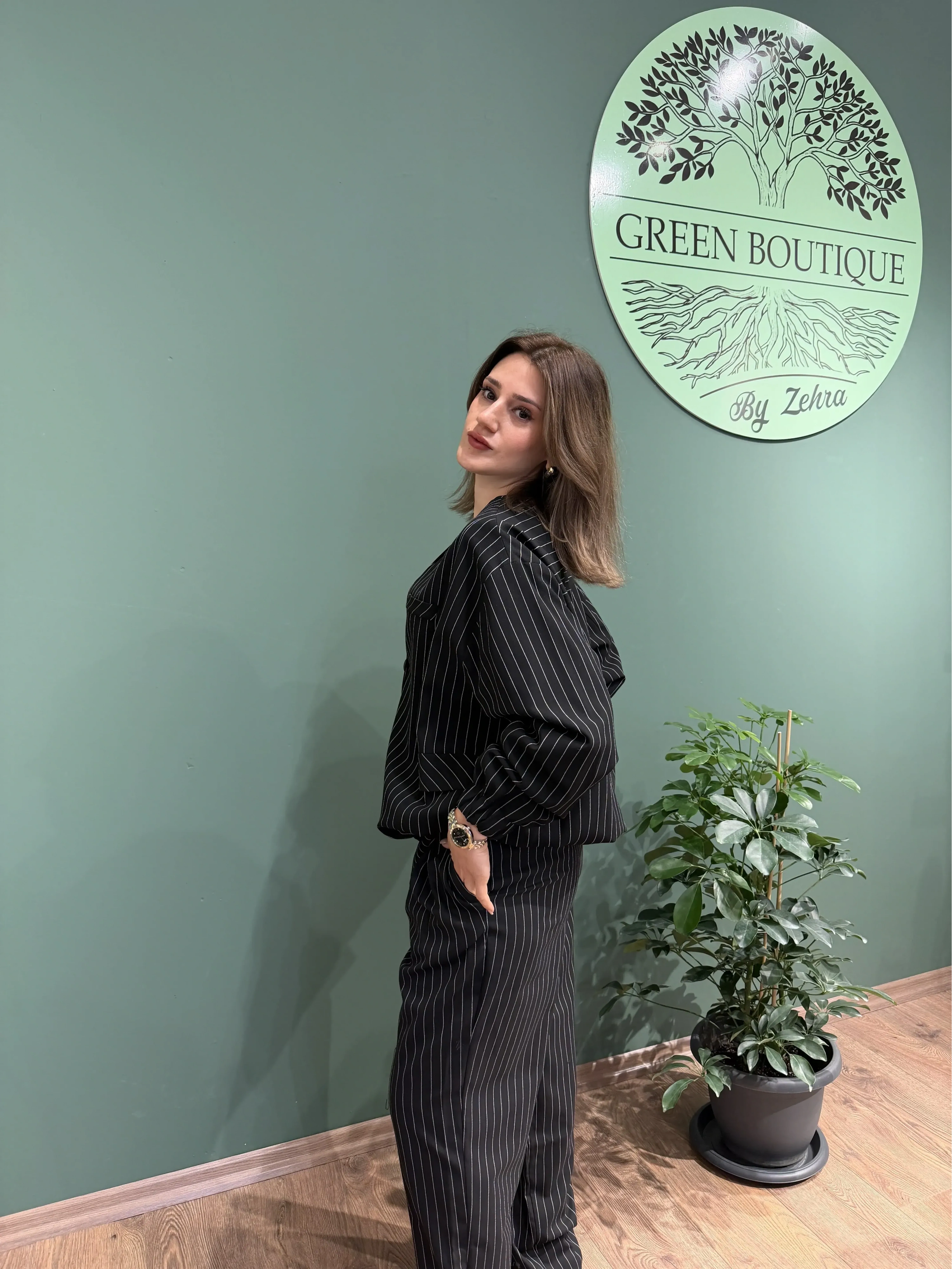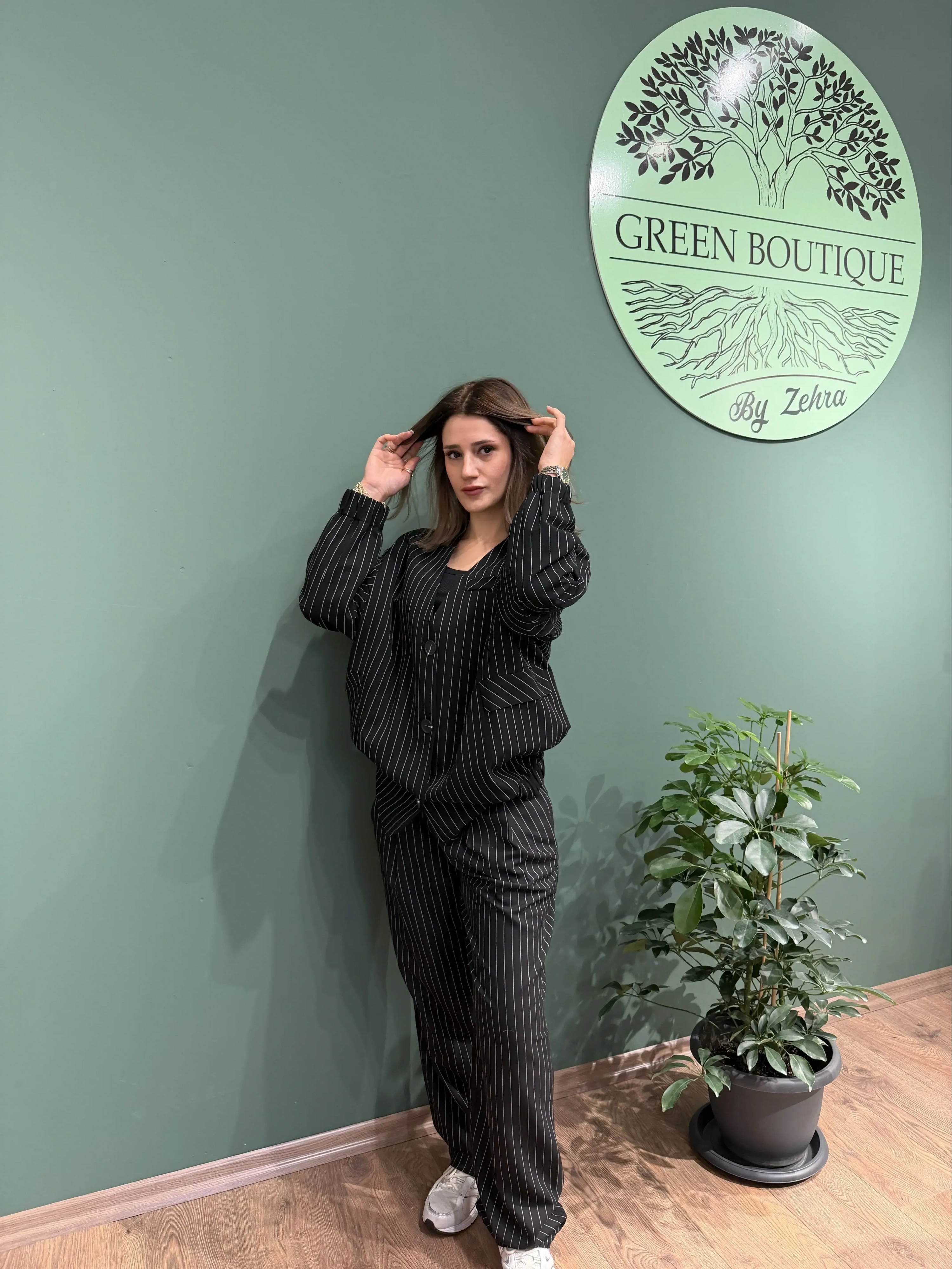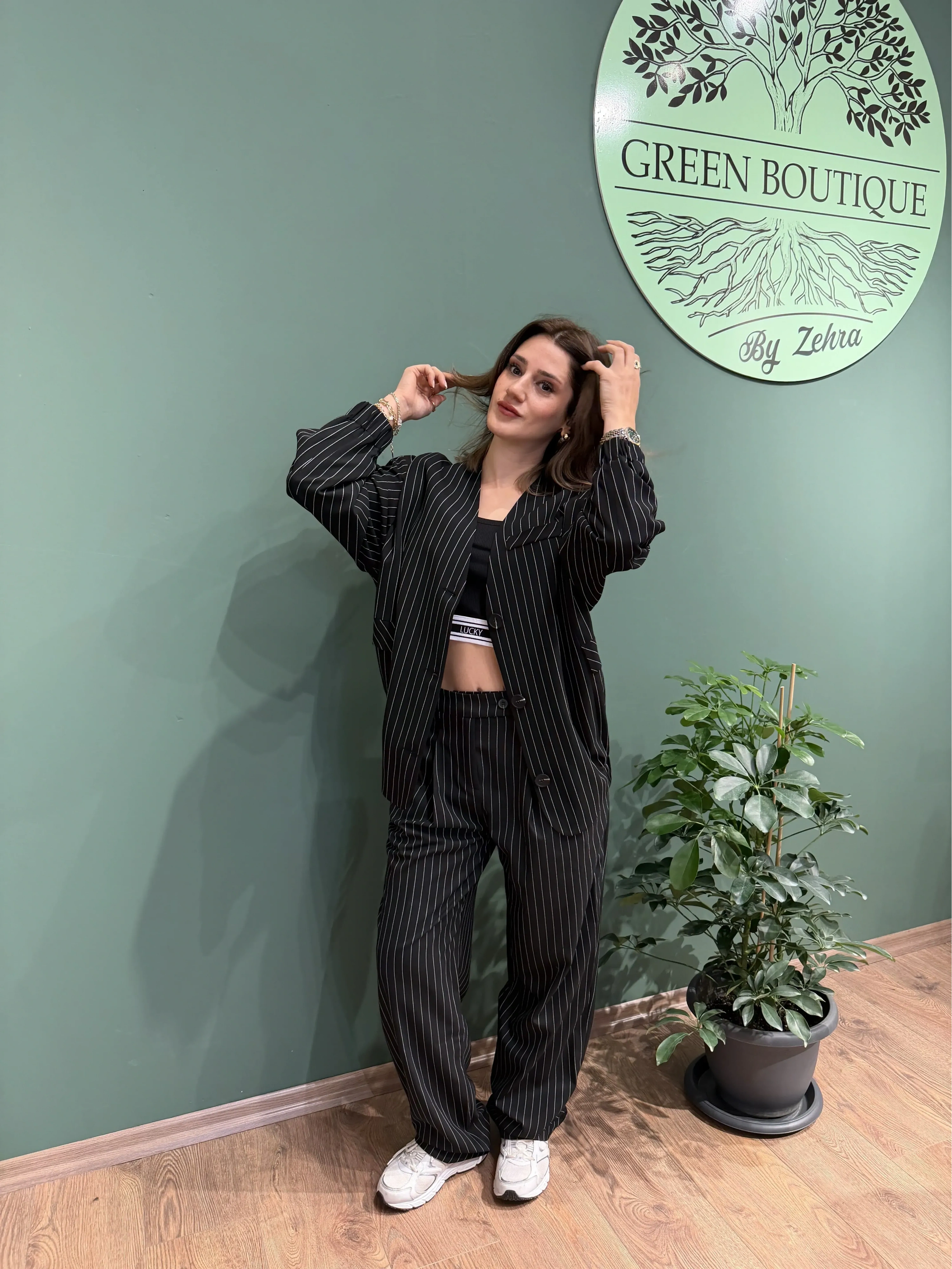 Siyah Beyaz Çizgili Ceket Pantolon Takım | Şık ve Modern İş Stili