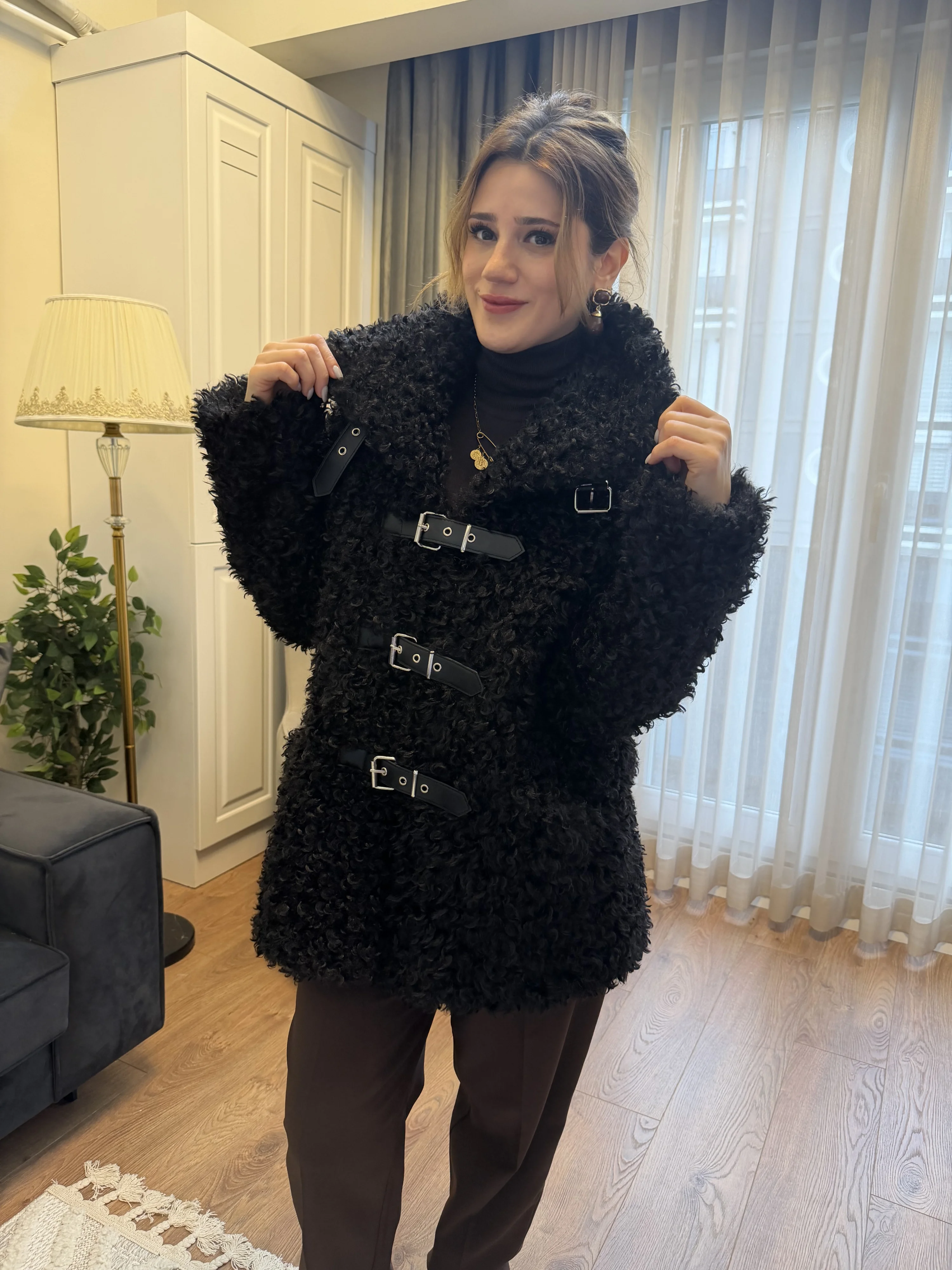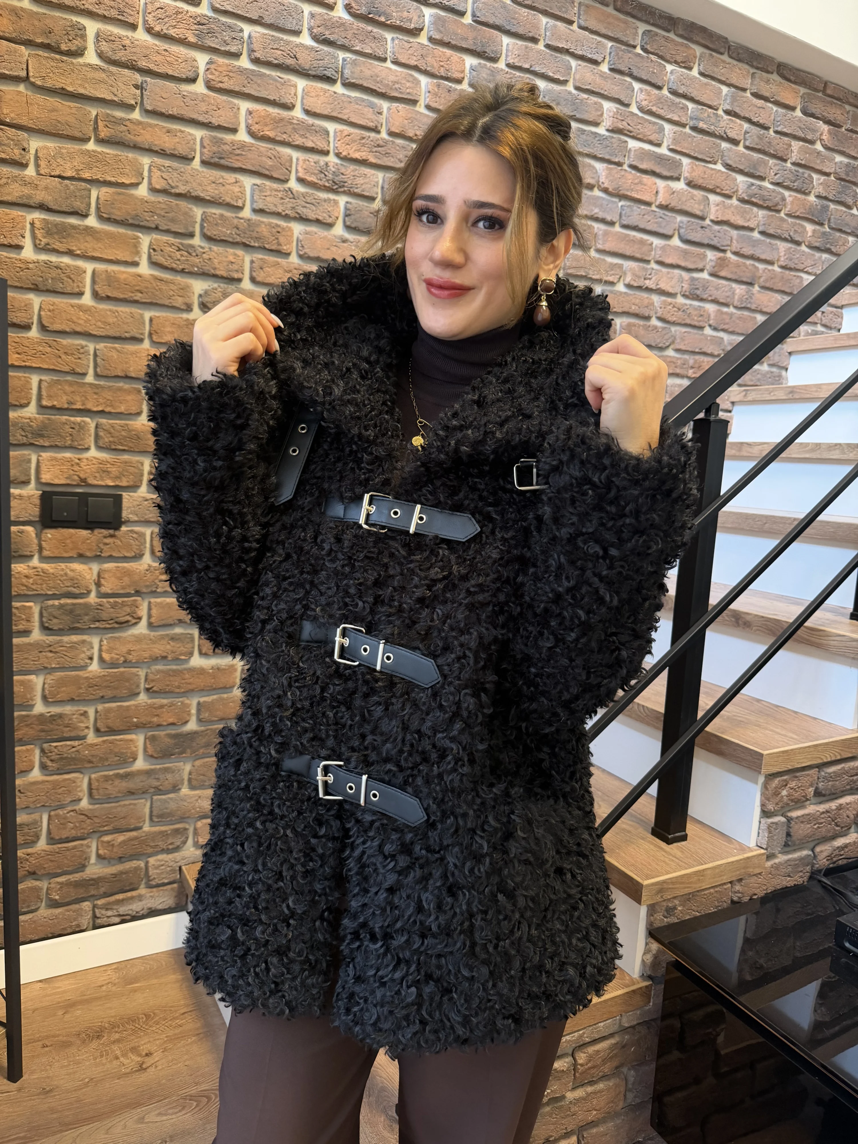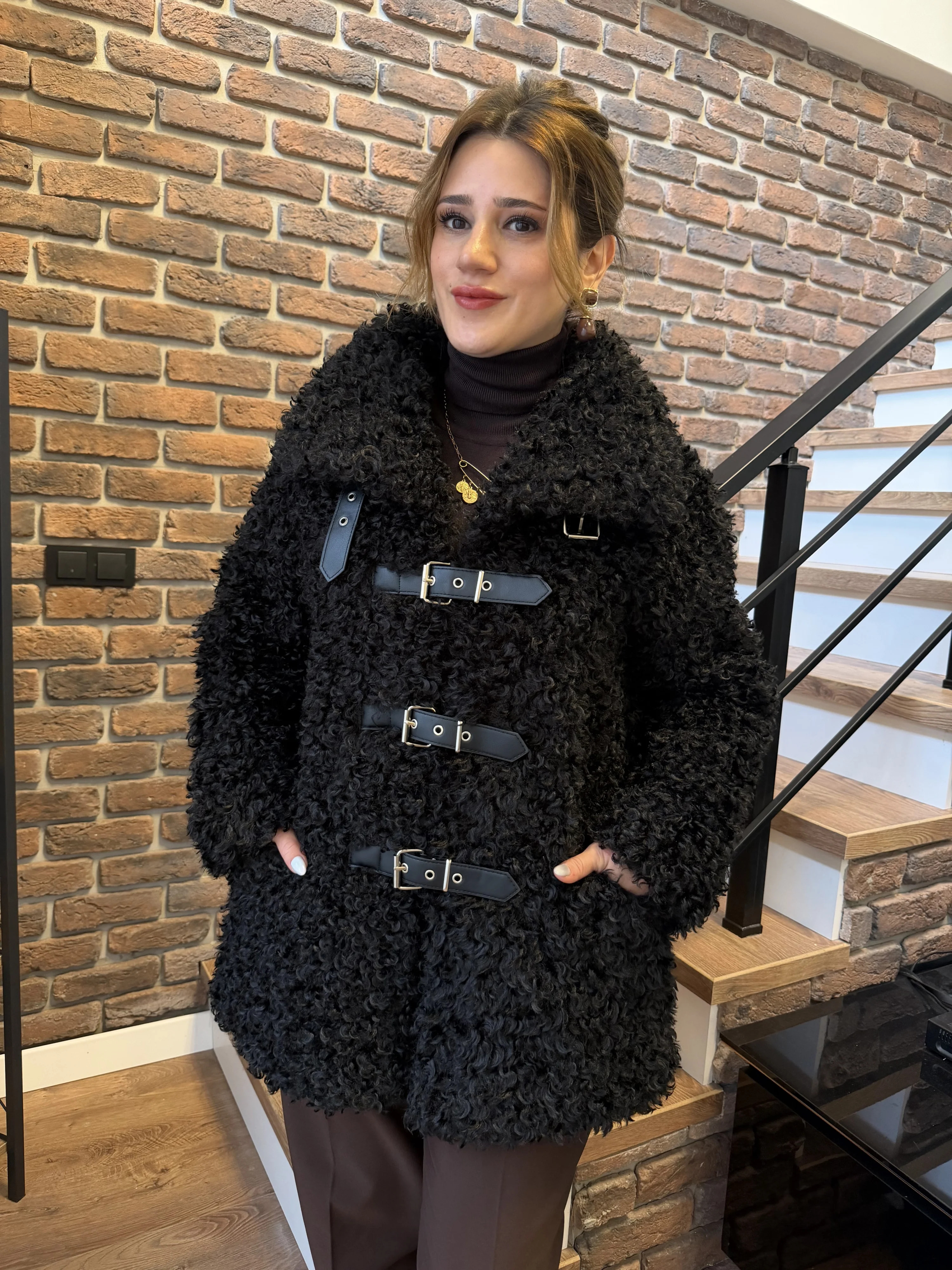 Soğuk havalarda sıcaklık ve şıklığı bir araya getiren Toka Detaylı Premium Peluş Mont Siyah, lüks dokusu ve modern tasarımıyla kış gardırobunuzun vazgeçilmez parçası olur. Yumuşacık peluş kumaşı sayesinde maksimum konfor ve sıcaklık sağlarken, siyah rengi her kombine uyum sunar. Toka detayları montun tasarımına sofistike ve modern bir dokunuş ekler.