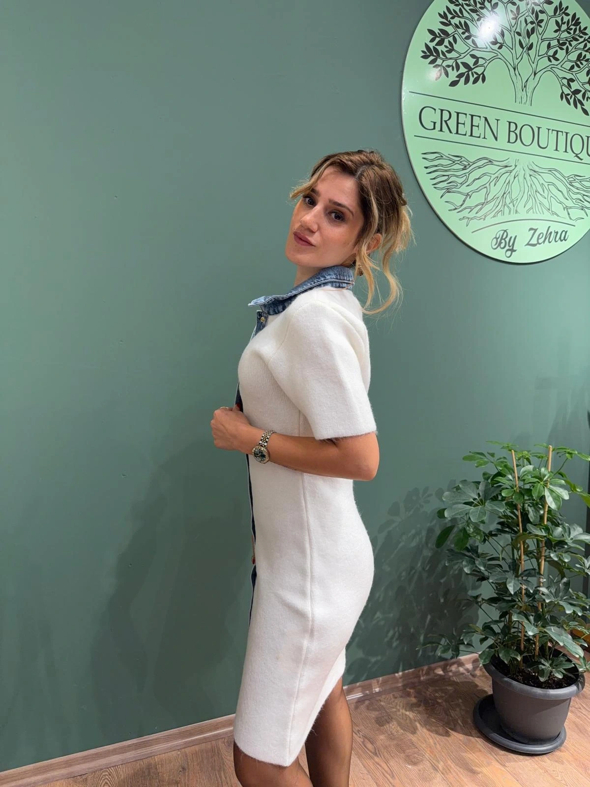 Minimalist beyaz rengi, her mevsime ve her kombine kolayca uyum sağlar. İster günlük stilinde sneakers ile ister özel günlerinde topuklu ayakkabılarla kombinleyerek çok yönlü bir kullanım elde edebilirsin. Hem şehir hayatının dinamizmine hem de rahat giyinmeyi sevenlerin stiline hitap eden bu elbise, gardırobunun favori parçalarından biri olmaya aday.