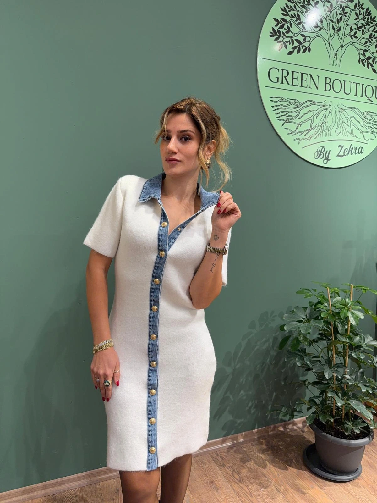 Şıklığı ve rahatlığı bir arada sunan Triko Jean Detaylı Çıtçıtlı Elbise – Beyaz, modern ve göz alıcı tarzıyla günün her anında fark yaratmanı sağlar. Yumuşak dokulu triko kumaşı sayesinde konforlu bir kullanım sunarken, jean detaylarıyla spor-şıklığı kusursuzca yansıtır. Çıtçıtlı ön kapama tasarımı ise hem pratik kullanım avantajı sağlar hem de elbiseye trendy bir görünüm kazandırır.